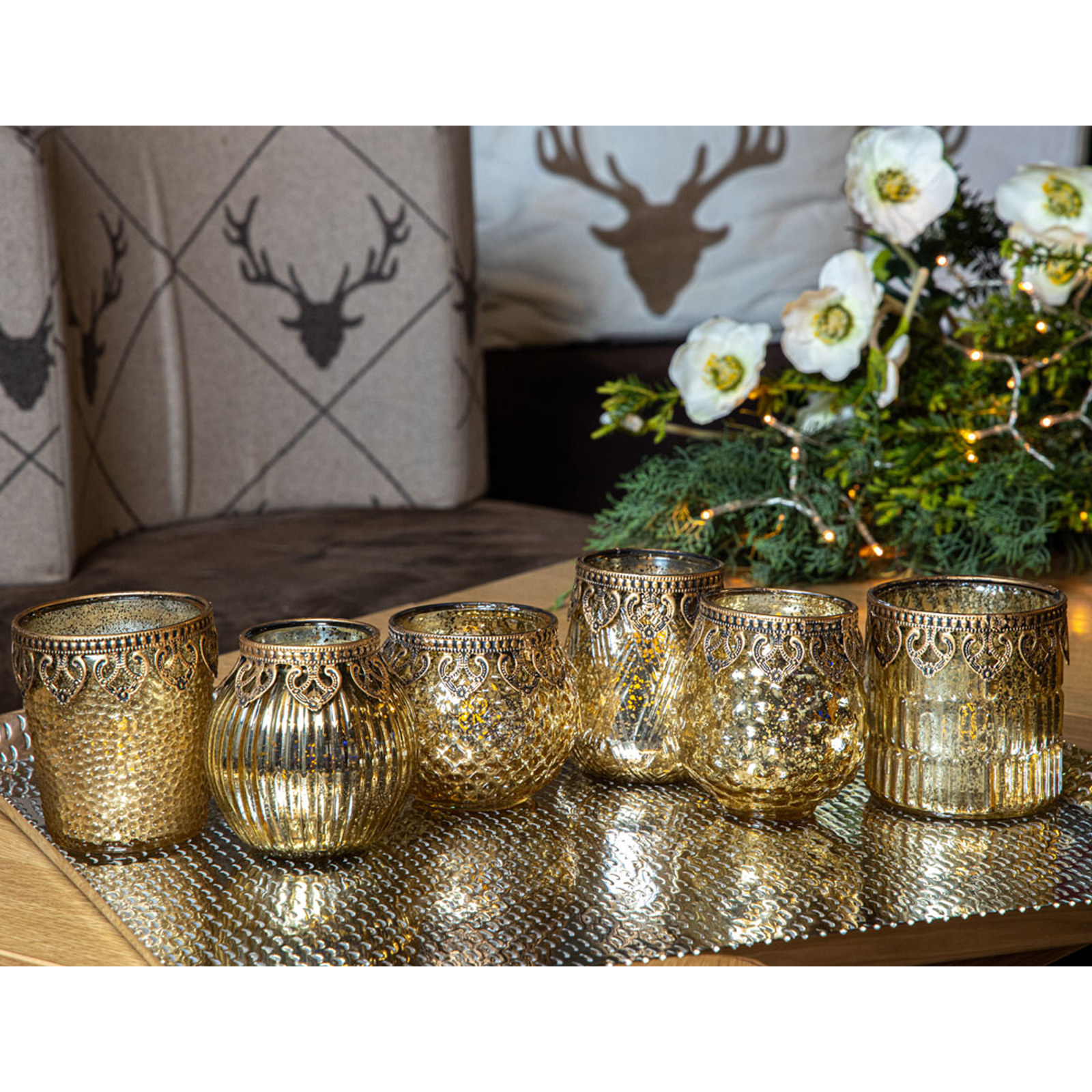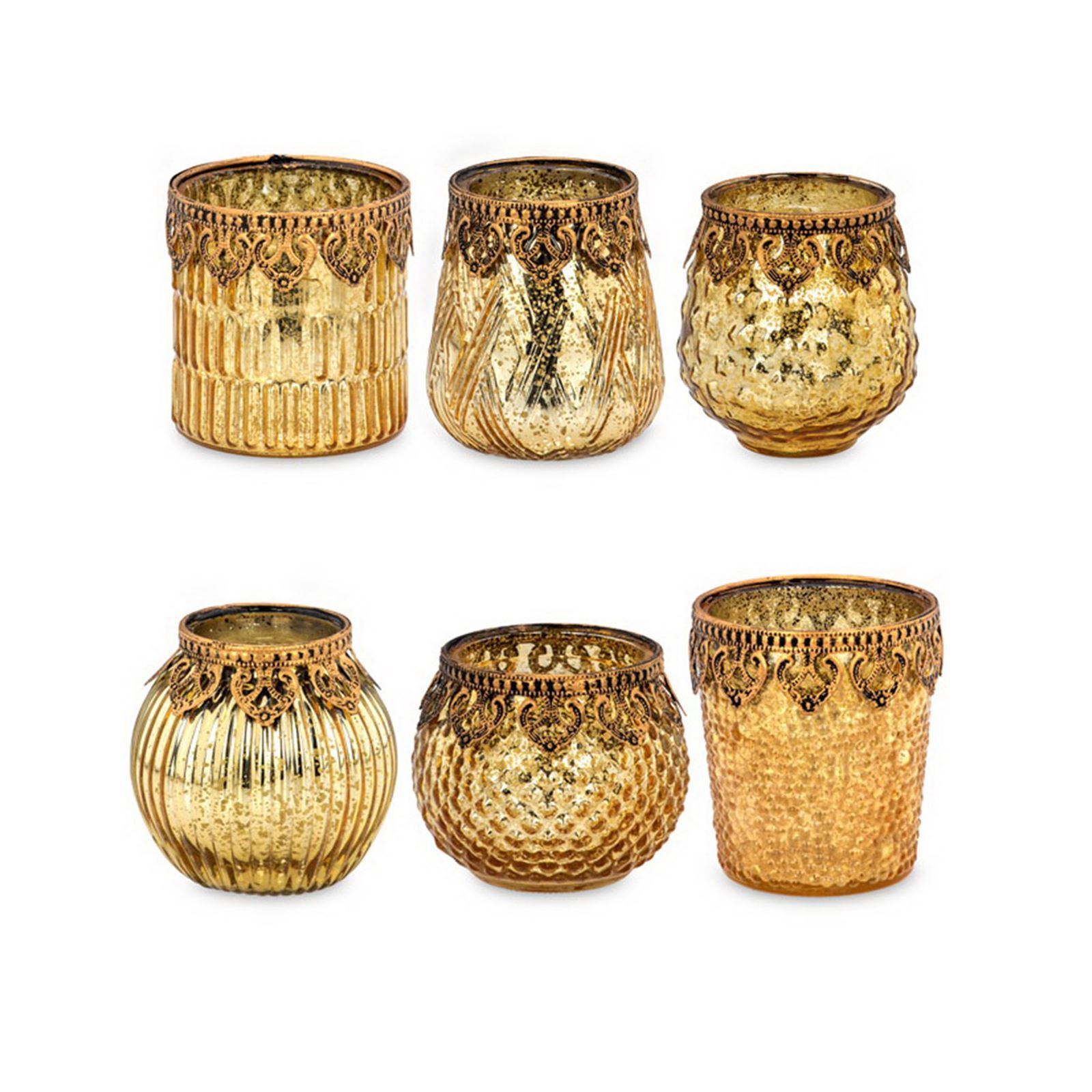 ✓ Goldglänzende Teelichthalter im 6er Set aus Glas in edler orientalischer Optik mit feiner metallischen Perl-Verzierung ✓ Jedes verzierte runde Teelichtglas ist ein edles Unikat, in verschiedenen Formen und modernen Oberflächendesigns ✓ Das nostalgische 6-teilige Windlichter Set mit Perlrand im trendigen Stil sind auch ganzjährig zu allen Stilen dekorativ ✓ Große antikgoldene Deko-Lichtgläser für Kerzen und LED-Teelichter als atmosphärisches Lichtspiel für das traute Heim ✓ Extravagante Deko-Gläser als Saisondeko und Geschenk wie zu Ostern, Hochzeiten, Weihnachten oder Geburtstagen