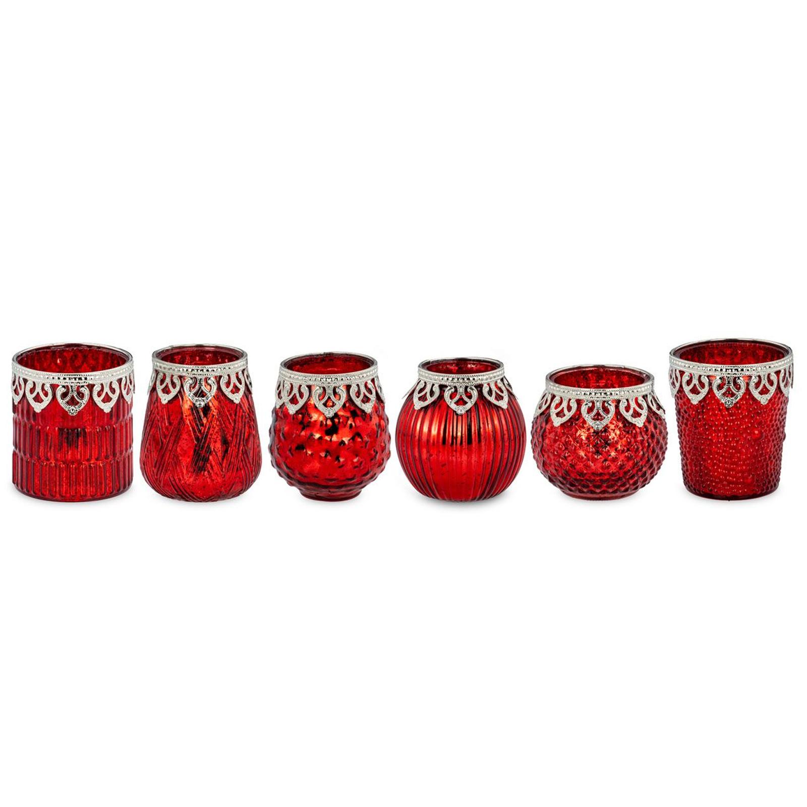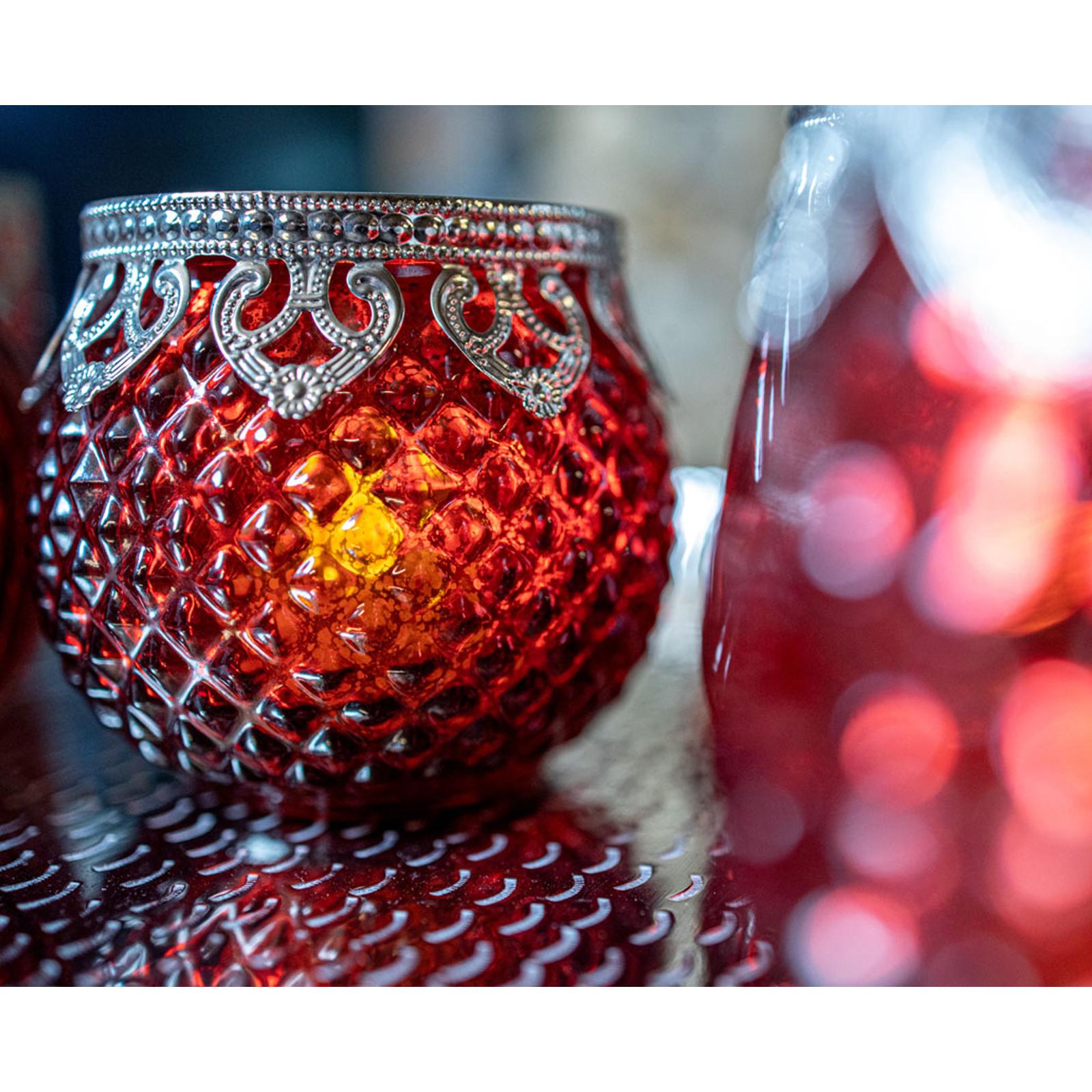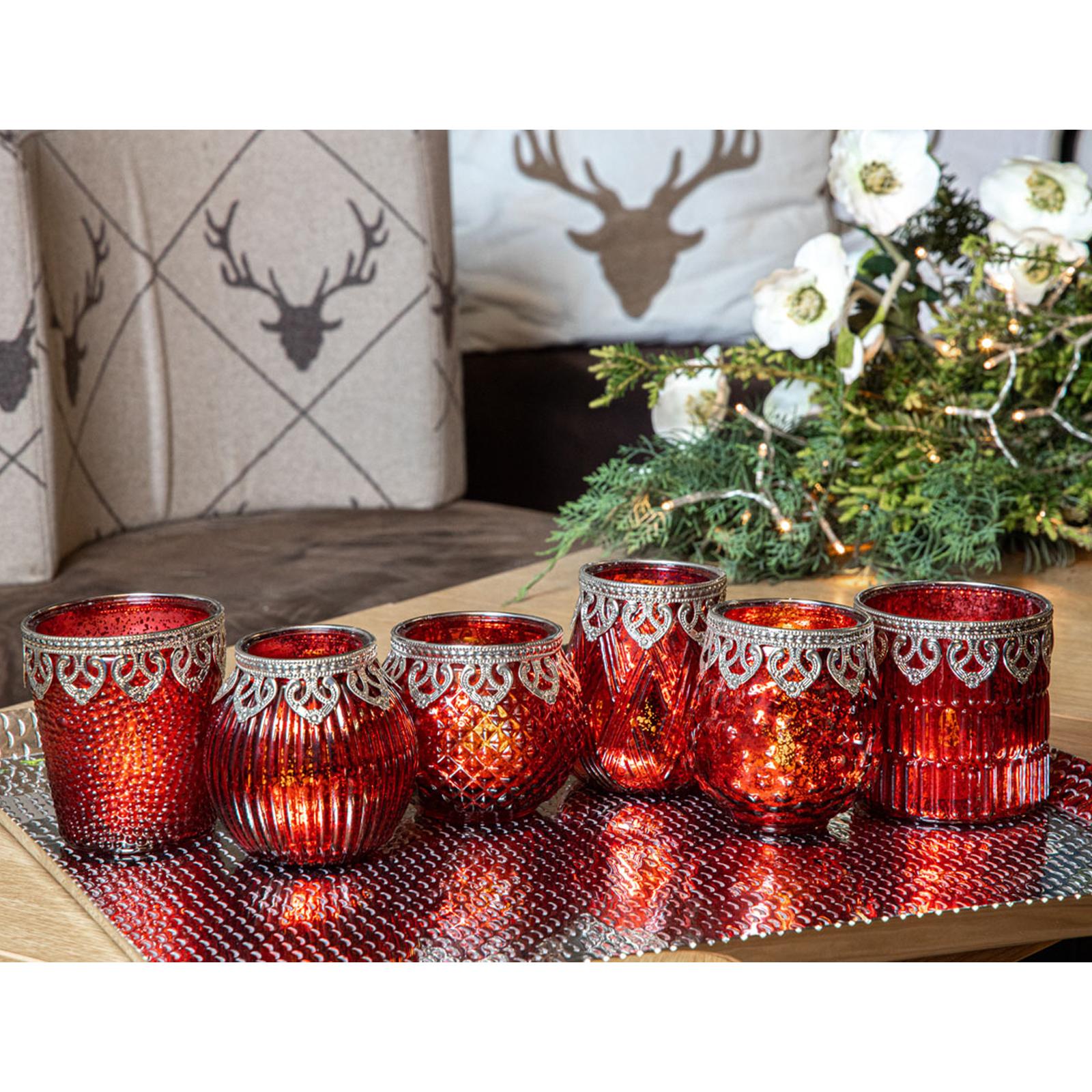 ✓ Rotglänzende Teelichthalter im 6er Set aus Glas in edler orientalischer Optik mit feiner metallischen Perl-Verzierung ✓ Jedes verzierte runde Teelichtglas ist ein edles Unikat, in verschiedenen Formen und modernen Oberflächendesigns ✓ Das nostalgische 6-teilige Windlichter Set mit Perlrand im trendigen Stil sind auch ganzjährig zu allen Stilen dekorativ ✓ Große antikrote 6er Deko-Lichtgläser für Kerzen und LED-Teelichter als atmosphärisches Lichtspiel für das traute Heim ✓ Extravagante Deko-Gläser als Saisondeko und Geschenk wie zu Ostern, Hochzeiten, Weihnachten oder Geburtstagen