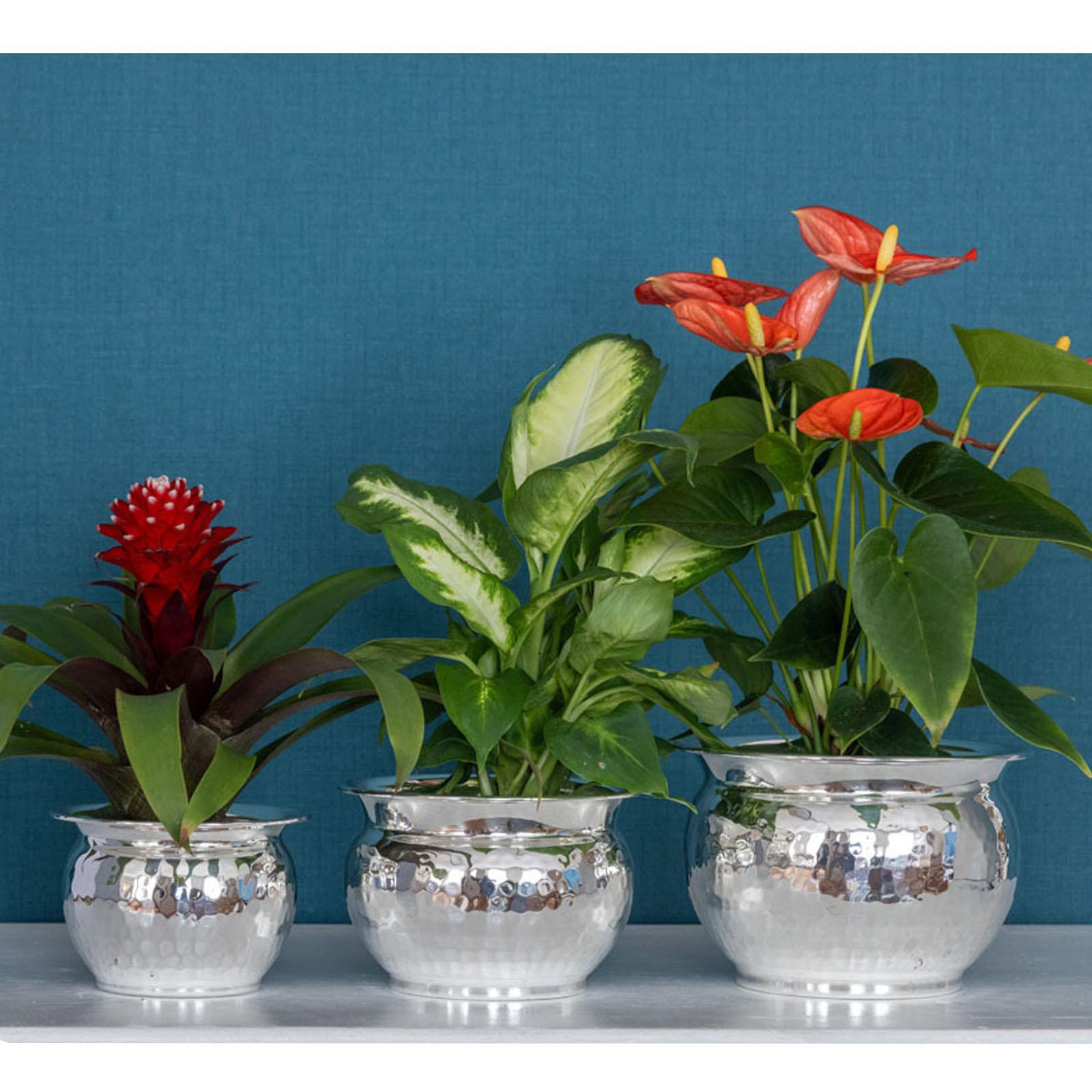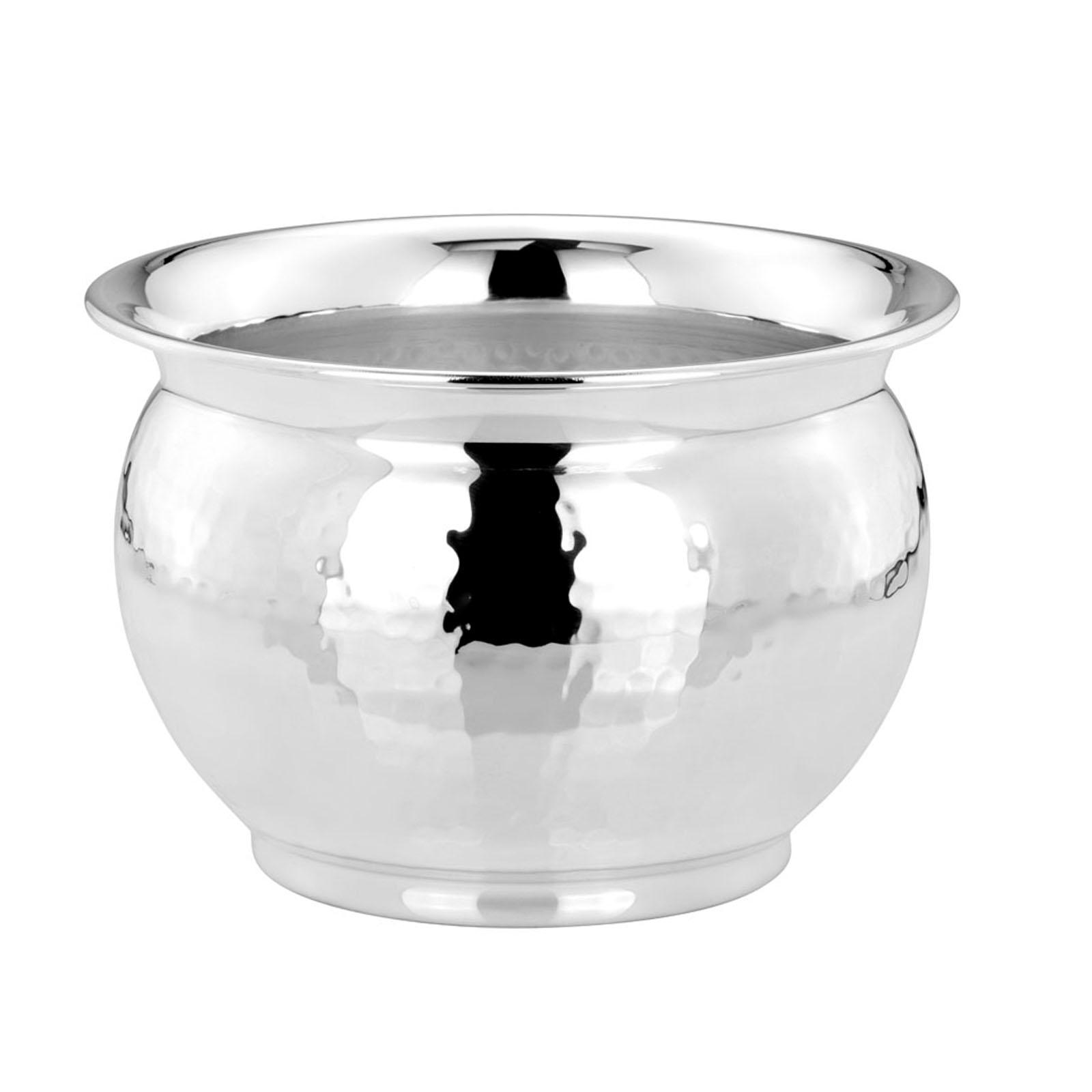 • Länge ca.: 18.0 cm • Breite ca.: 18.0 cm • Höhe ca.: 12.5 cm • Durchmesser ca.: 18.0 cm • Material: Metall • Beschichtung: versilbert • Veredelung: anlaufgeschützt • Oberfläche: glatt poliert • Oberfläche Details: gehämmert • spülmaschinengeeignet: nein • Farbe: silber • Funktionalität: Zum Überstülpen von Pflanztöpfen • Dimension: groß • Gewicht ca.: 0,661 Kg