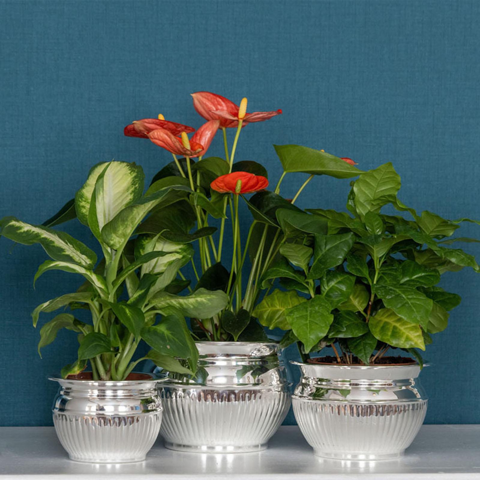 Produktdetails des versilberten Übertopfs