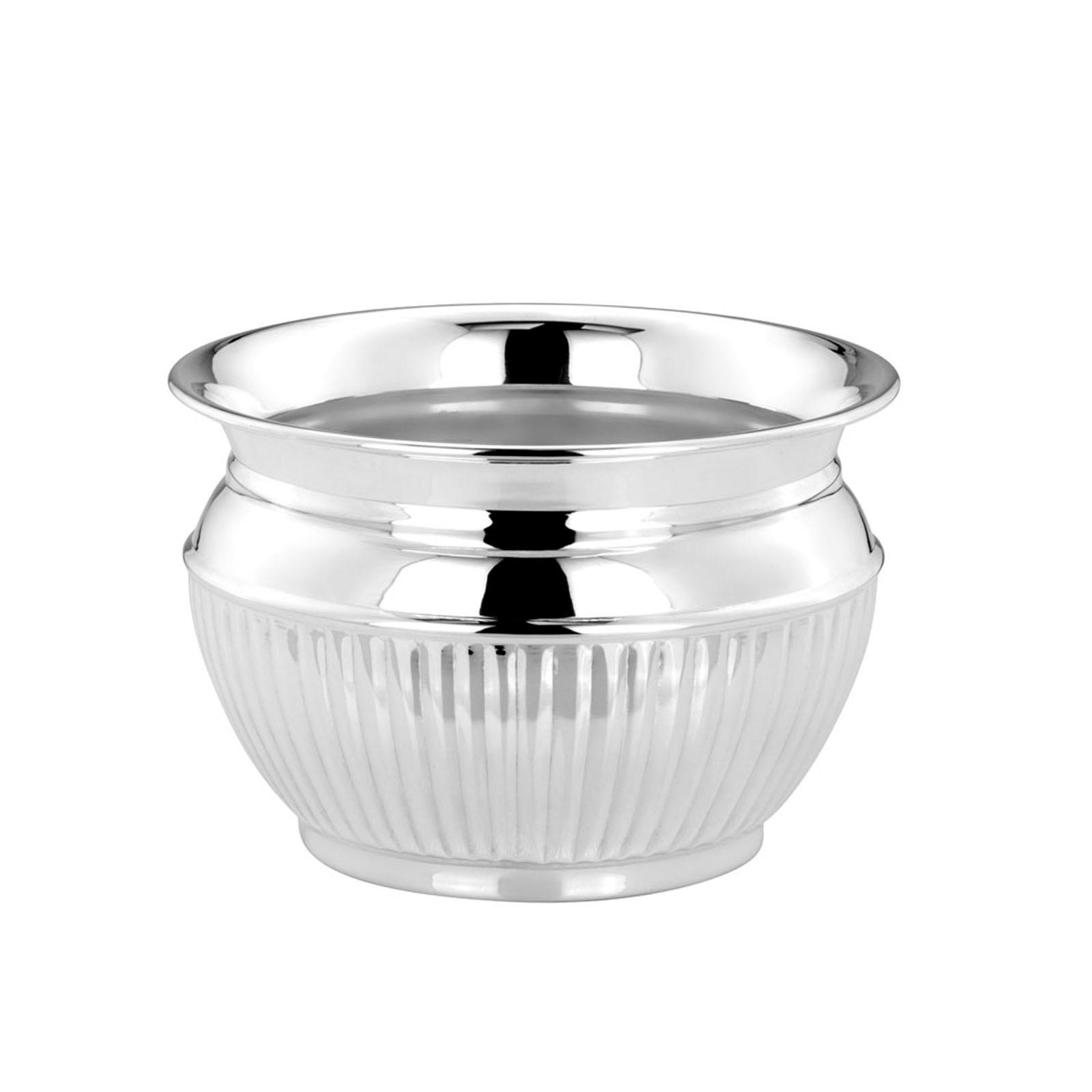 • Länge ca.: 15.5 cm • Breite ca.: 15.5 cm • Höhe ca.: 10.5 cm • Durchmesser ca.: 15.5 cm • Material: Metall • Beschichtung: versilbert • Veredelung: anlaufgeschützt • Oberfläche: glatt poliert • Oberfläche Details: Streifendekor • spülmaschinengeeignet: nein • Farbe: silber • Funktionalität: Zum Überstülpen von Pflanztöpfen • Dimension: mittel • Gewicht ca.: 0,437 Kg