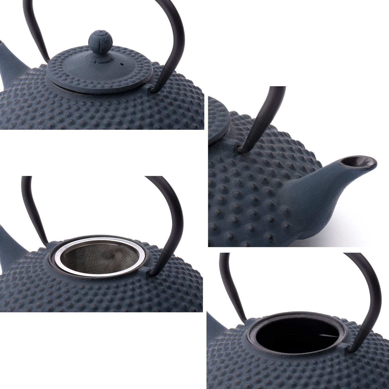 ✓ Die kleine, runde & blaue Teekanne mit 0.8 Liter aus hochwertigem Gusseisen isoliert optimal Ihren Tee ✓ Das Aroma kann sich in der matten gusseisernen Asia Teekanne durch verschiedene Teesorten entfalten ✓ Die flache kleine & genoppte Guss-Teekanne verfügt über ein feinmaschiges Tee-Filtersieb aus Edelstahl ✓ Die innere & pflegeleichte Emaillebeschichtung der 800 ml Gusskanne mit Edelstahlsieb schützt vor Rost ✓ Dank der Emaillierung geht der aromatische Geschmack des Tees nicht in das Gusseisen der Kanne über