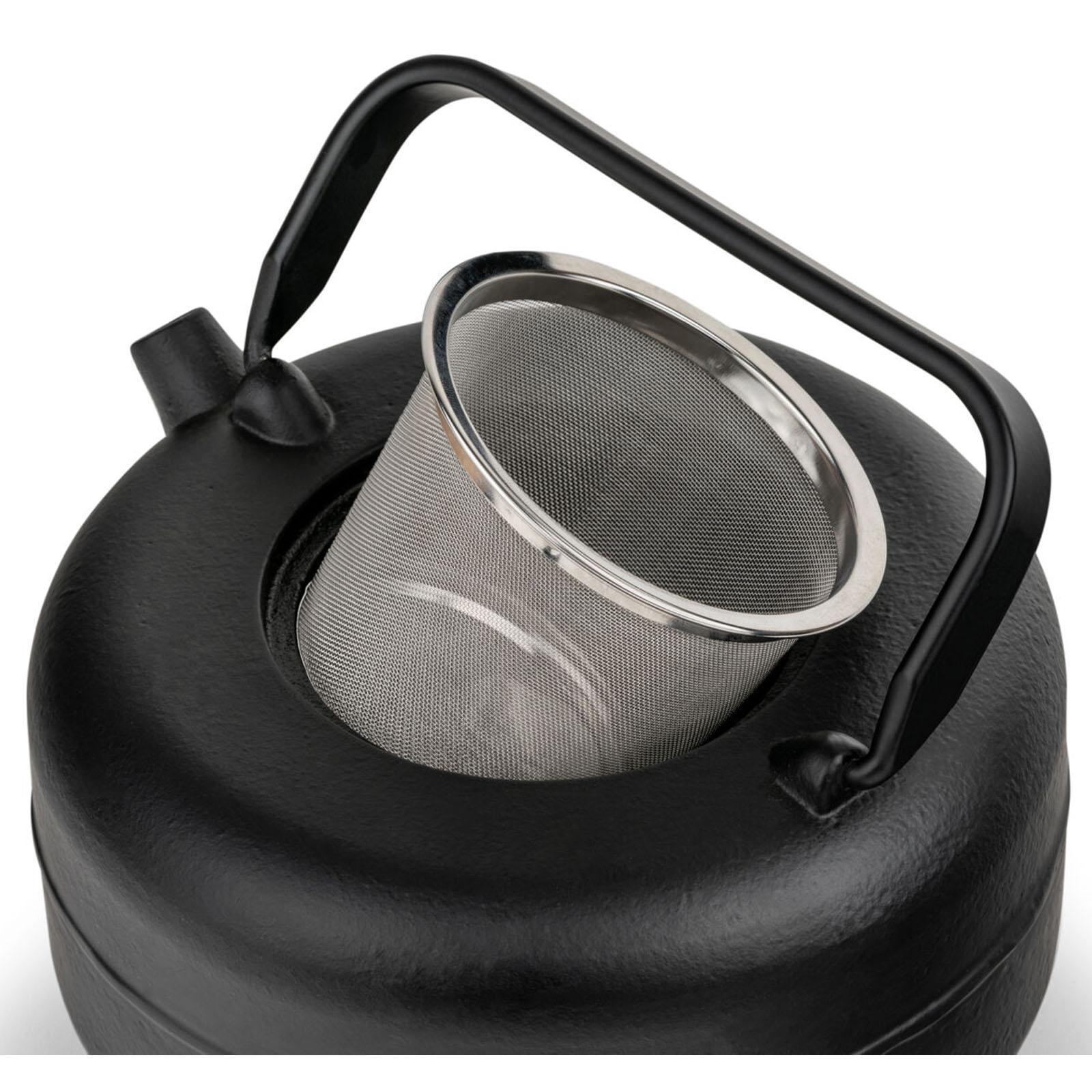✓ Kompakte, matte Gusseisen-Teekanne inklusive Teefilter-Sieb aus Edelstahl und geradem Handgriff