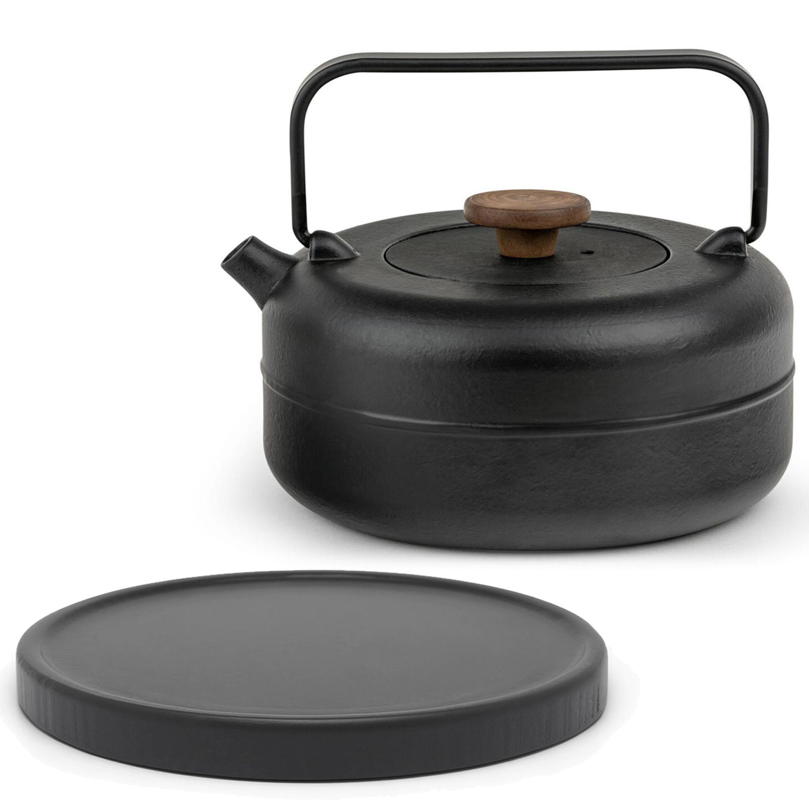 Produkt-Eigenschaften ✓ Die schwarze Guss-Teekanne mit 0,75 Liter & schwarzem Untersetzer hält Tee besonders lange warm