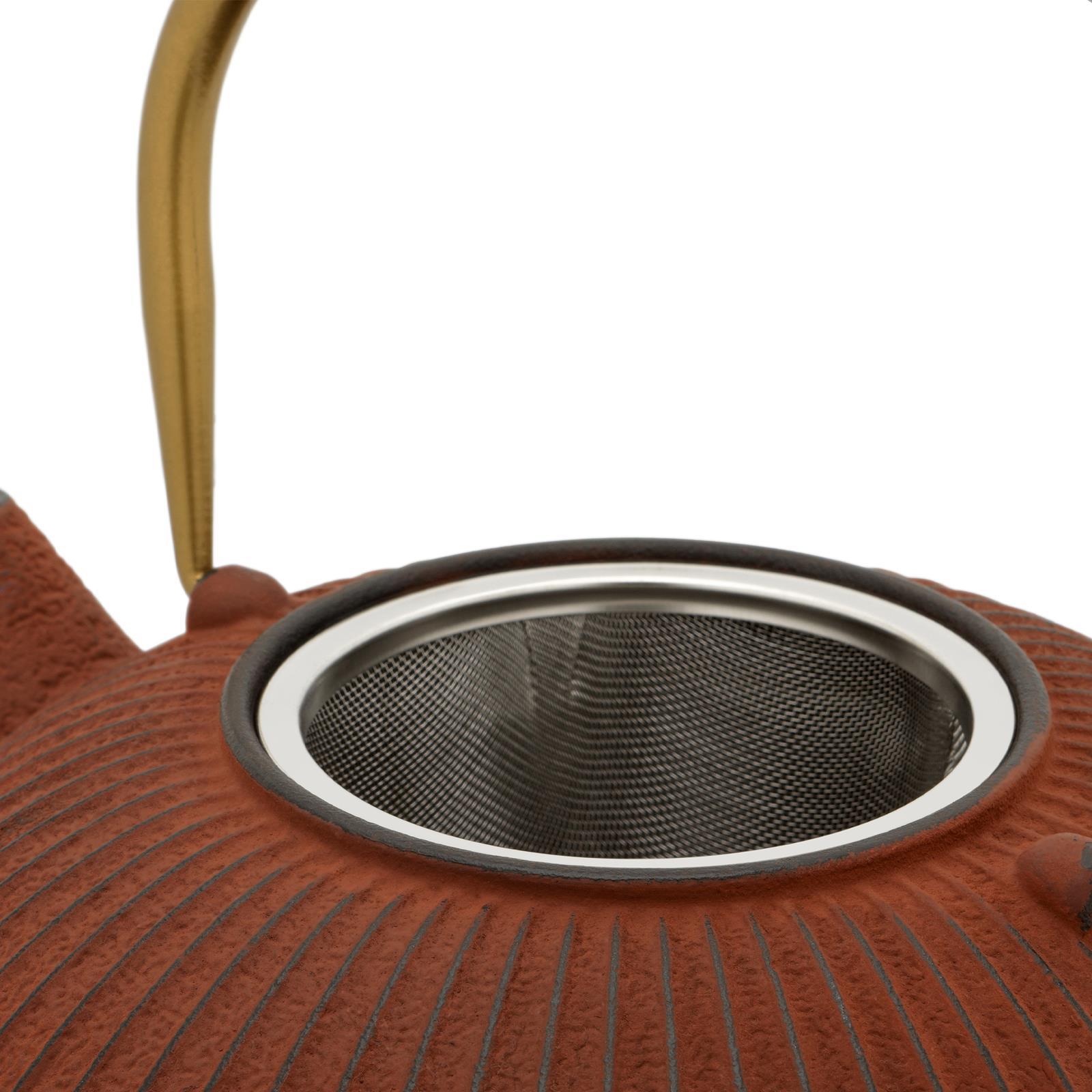 Produkt-Eigenschaften ✓ Diese große, rote Guss-Teekanne im asiatischen Stil und mit 1.1 Liter Volumen isoliert optimal Ihren Tee
