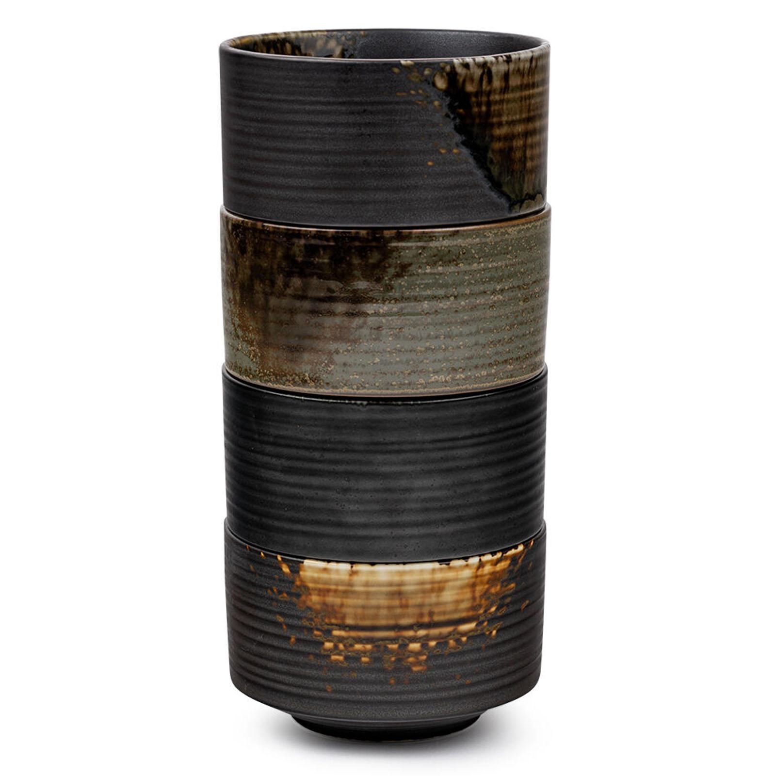 Dieses 4-teilige Keramikbecher Set mit je 180 ml Fassungsvermögen bringen Ruhe, Charakter und Authentizität auf den Tisch. Ihre erdigen Farbtöne, lebendigen Glasuren und feinen Strukturen erinnern an traditionelle Töpferkunst und machen jeden Becher zu einem individuellen Einzelstück. Die kompakte Form eignet sich perfekt für Tee, Matcha, Espresso, kleine Suppen, Dips oder Desserts. Dank der dickwandigen Keramik bleibt der Inhalt angenehm warm, während sich der Becher sicher und angenehm in der Hand anfühlt. Die leicht strukturierte Oberfläche verleiht zusätzliche Haptik und unterstreicht den handwerklichen Charakter. Ob für bewusste Teemomente, eine minimalistische Tischgestaltung oder als stilvolle Ergänzung im Alltag - diese Steingut-Becher fügen sich harmonisch in moderne, natürliche und asiatisch inspirierte Wohnkonzepte ein. Ihre zeitlose Ausstrahlung macht sie ebenso zu einer geschmackvollen Geschenkidee für Liebhaber hochwertiger Tischkultur.