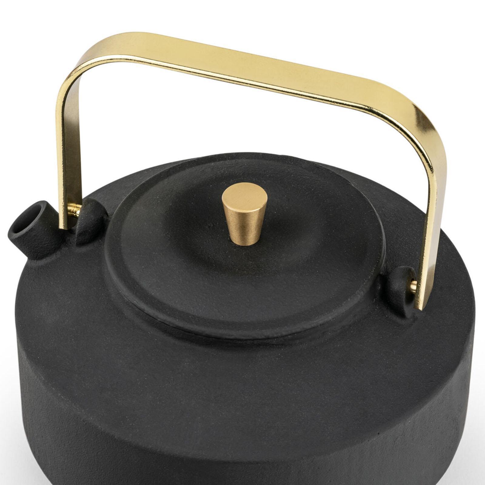 Dank der gläsernen Emaille-Innenbeschichtung bleibt das Gusseisen geschmacksneutral, wodurch sich diese Teekanne besonders gut für aromatisierte Früchtetees oder Gewürztees wie Chai eignet. Die matte schwarze Oberfläche in Kombination mit den goldenen Akzenten verleiht der Kanne eine ruhige Eleganz und macht sie zugleich zu einer stilvollen Geschenkidee - ob zu Weihnachten, zum Geburtstag oder zu anderen besonderen Anlässen.