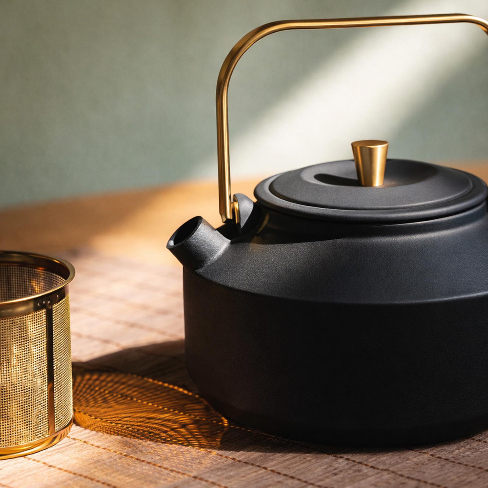 Dank der gläsernen Emaille-Innenbeschichtung bleibt das Gusseisen geschmacksneutral, wodurch sich diese Teekanne besonders gut für aromatisierte Früchtetees oder Gewürztees wie Chai eignet. Die matte schwarze Oberfläche in Kombination mit den goldenen Akzenten verleiht der Kanne eine ruhige Eleganz und macht sie zugleich zu einer stilvollen Geschenkidee - ob zu Weihnachten, zum Geburtstag oder zu anderen besonderen Anlässen.