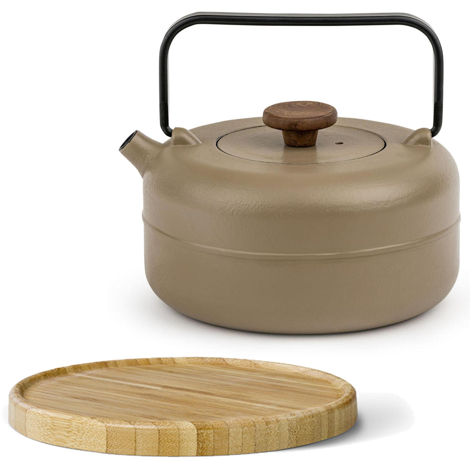 Produkt-Eigenschaften ✓ Die Guss-Teekanne in Beige mit 0,75 Liter und braunem Untersetzer hält Tee besonders lange warm
