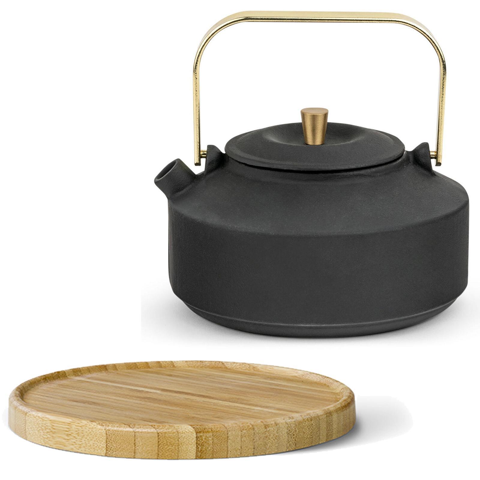 Dank der gläsernen Emaille-Innenbeschichtung bleibt das Gusseisen geschmacksneutral, wodurch sich diese Teekanne besonders gut für aromatisierte Früchtetees oder Gewürztees wie Chai eignet. Die matte schwarze Oberfläche in Kombination mit den goldenen Akzenten verleiht der Kanne eine ruhige Eleganz und macht sie zugleich zu einer stilvollen Geschenkidee - ob zu Weihnachten, zum Geburtstag oder zu anderen besonderen Anlässen.