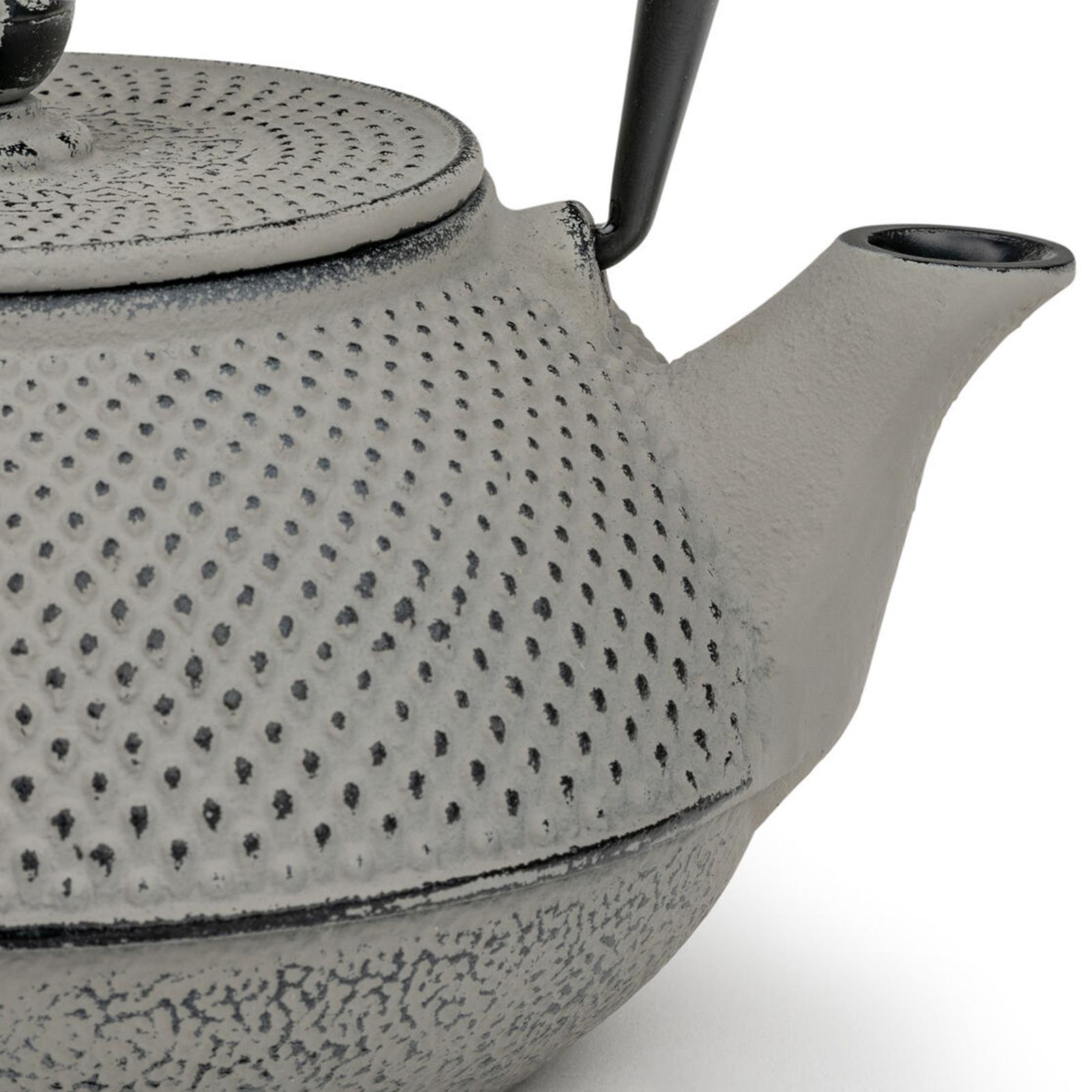 Produkt-Eigenschaften ✓ Die kleine Guss-Teekanne im hellen, grauen Stil fasst 0.8 Liter & verfügt über 2 Teebecher aus Gusseisen