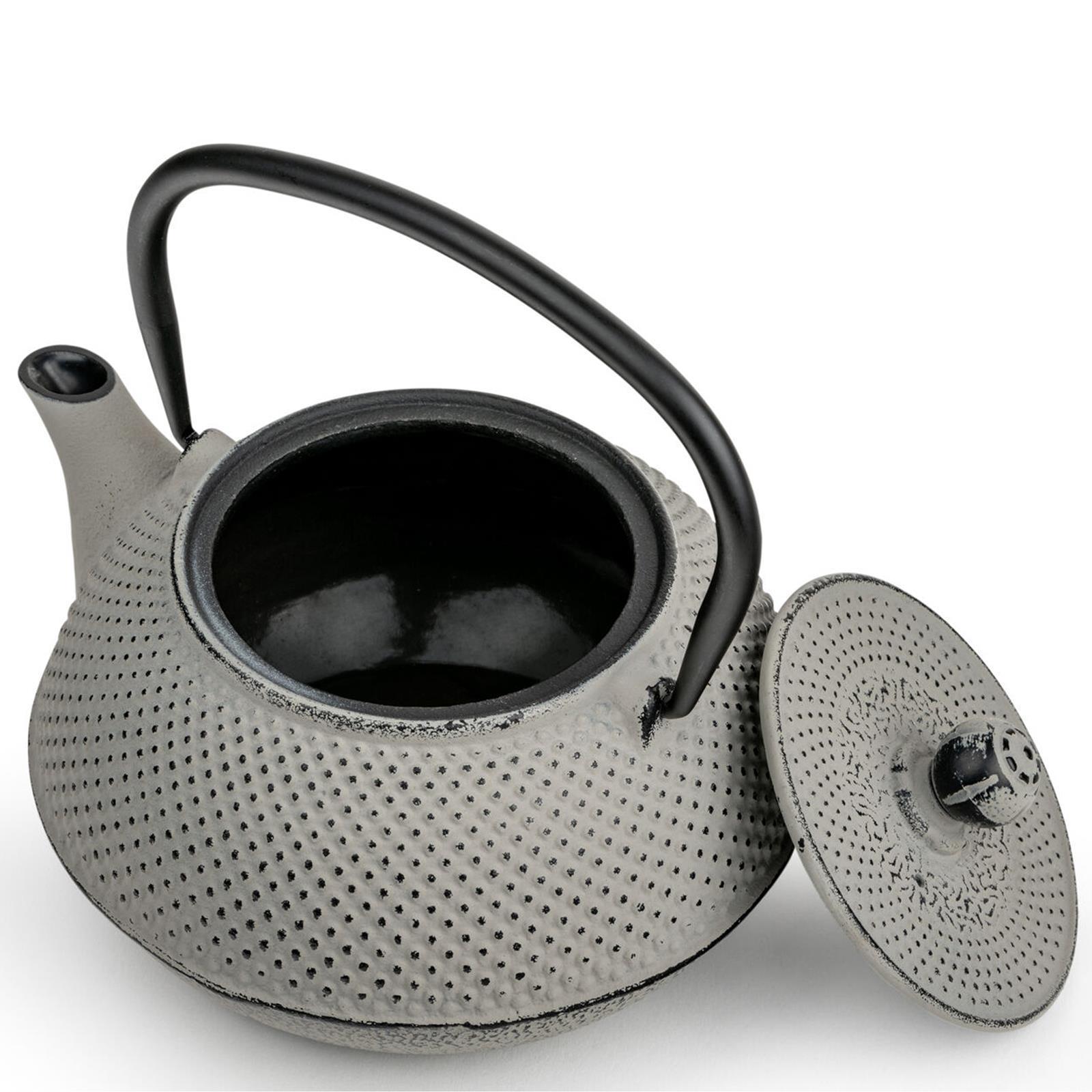 ✓ Die graue Gussteekanne im Set zeichnet sich durch ihr genopptes Design aus & enthält ein Teefilter-Sieb