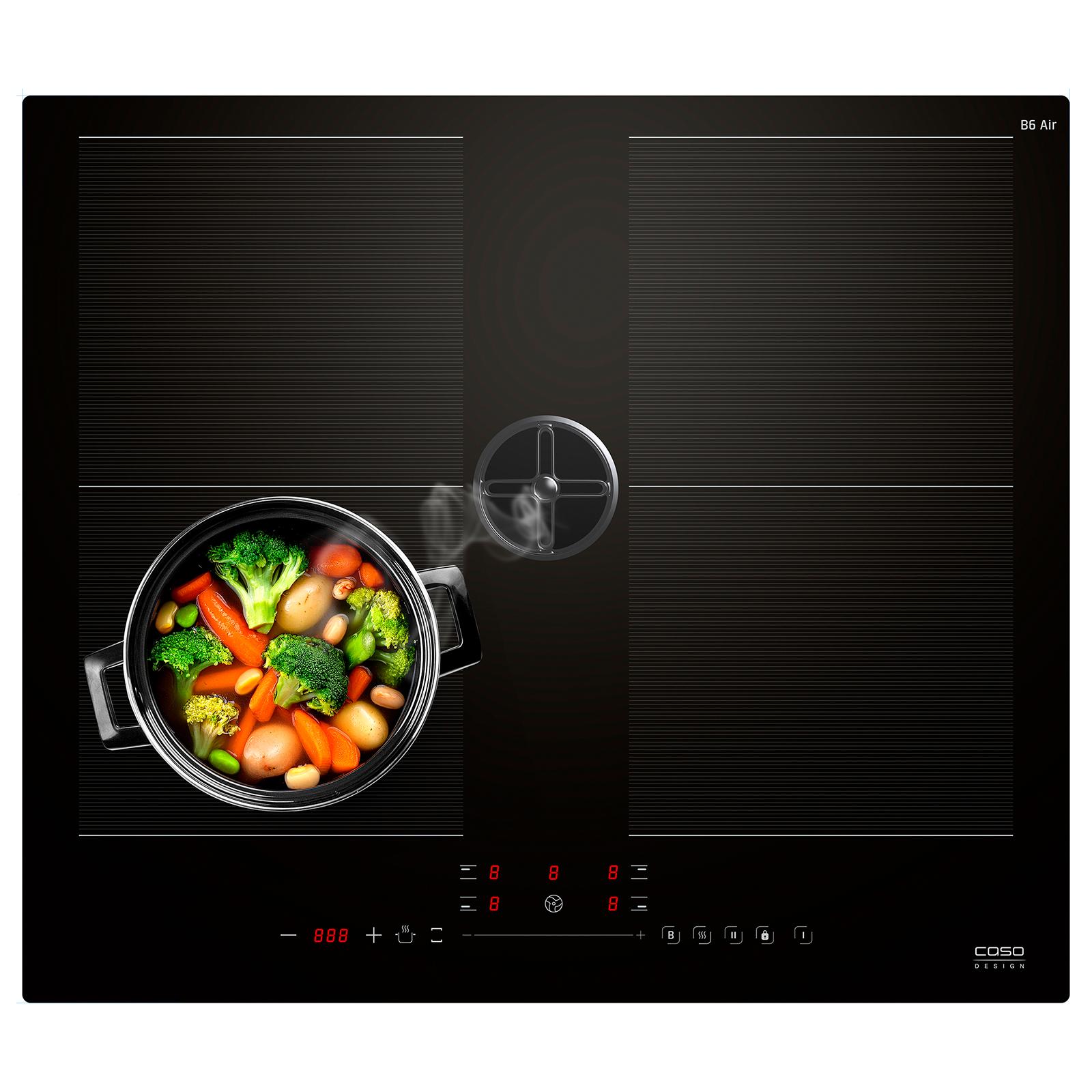 Das Kochfeld mit zentralem Umluftabzug bietet zahlreiche Komfort- und Sicherheitsfunktionen, darunter eine Ankochautomatik, eine individuell einstellbare Abschaltautomatik sowie einen zuverlässigen Überhitzungsschutz. Durch die schnelle Reaktionszeit der Induktion kochen und braten Sie besonders zügig und präzise - vergleichbar mit dem Kochen auf Gas.