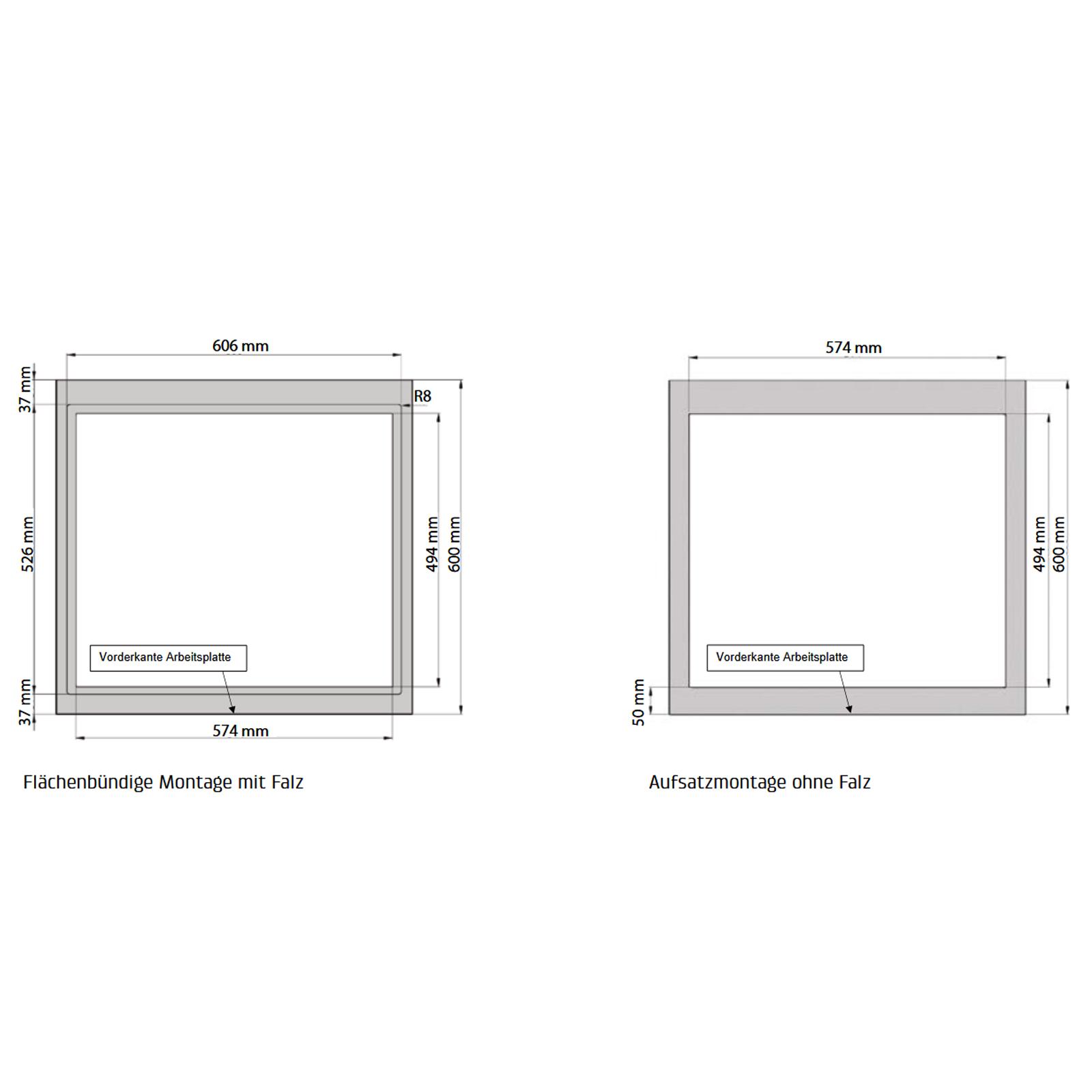 Das 60 cm breite Kochfeld bietet zwei Einbauvarianten: Es kann sowohl flächenbündig als auch rahmenlos in die Arbeitsplatte integriert werden und fügt sich damit harmonisch in unterschiedliche Küchendesigns ein.