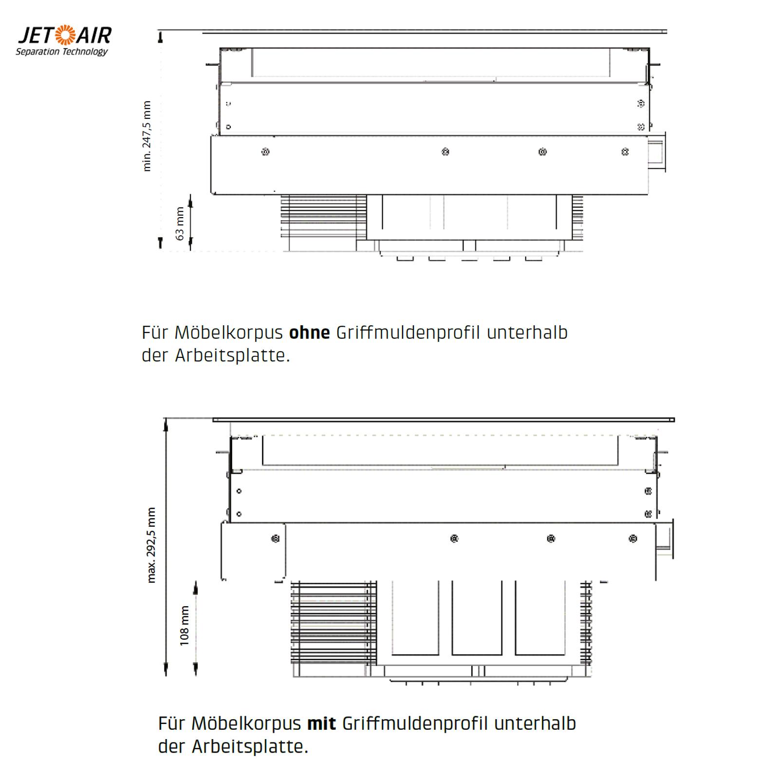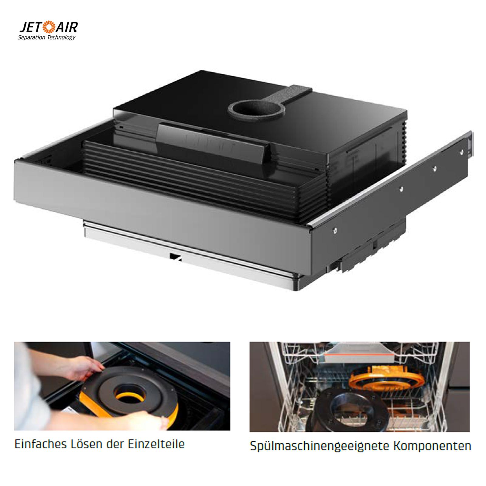 ☛ 1x Flächeninduktionskochfeld mit Umluft-Abzug ☛ 1x Jet Air Lüfterkern für Umluft im Unterbau ☛ 2x Umluftfilter