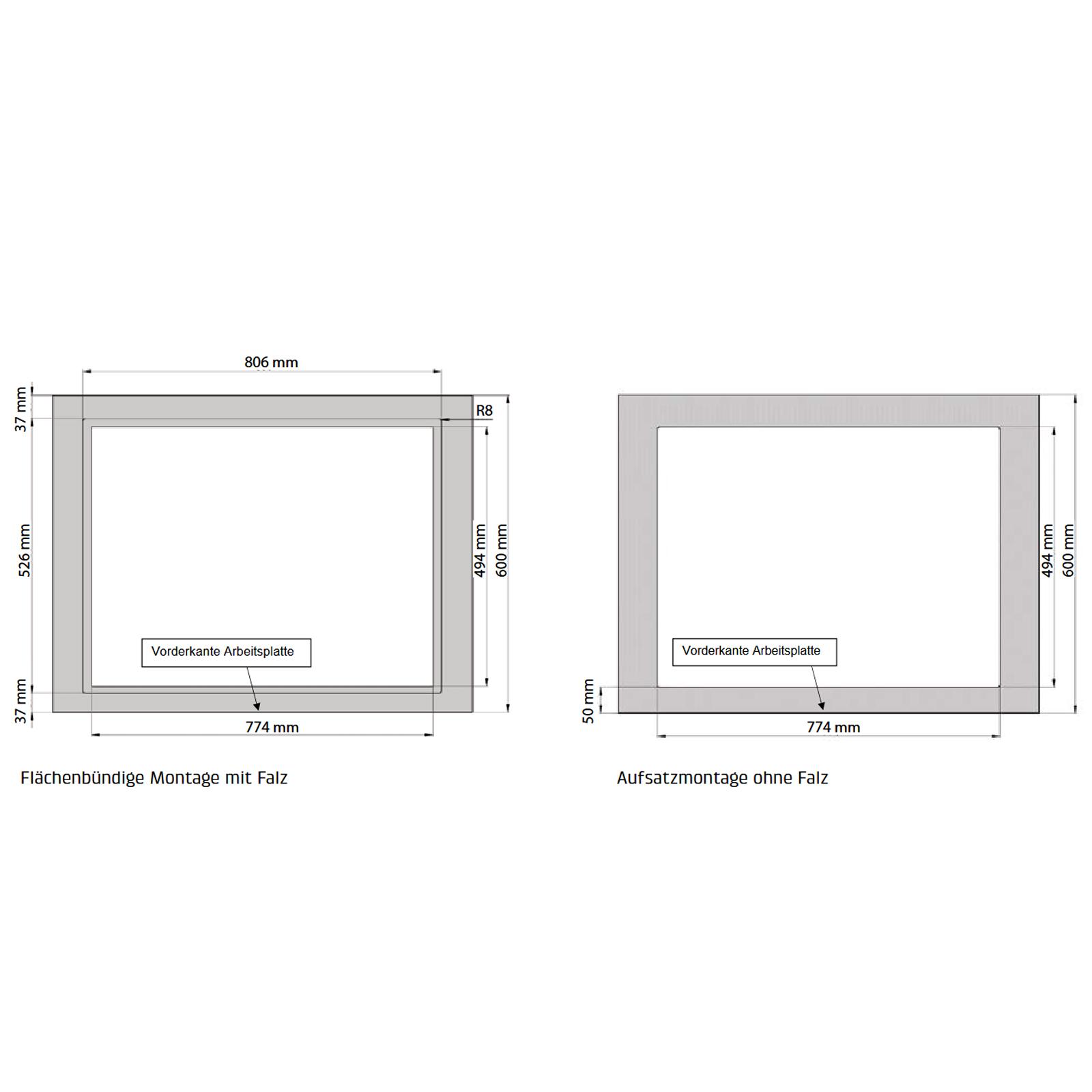 Das 80 cm breite Kochfeld bietet zwei Einbauvarianten: Es kann sowohl flächenbündig als auch rahmenlos in die Arbeitsplatte integriert werden und fügt sich damit harmonisch in unterschiedliche Küchendesigns ein.