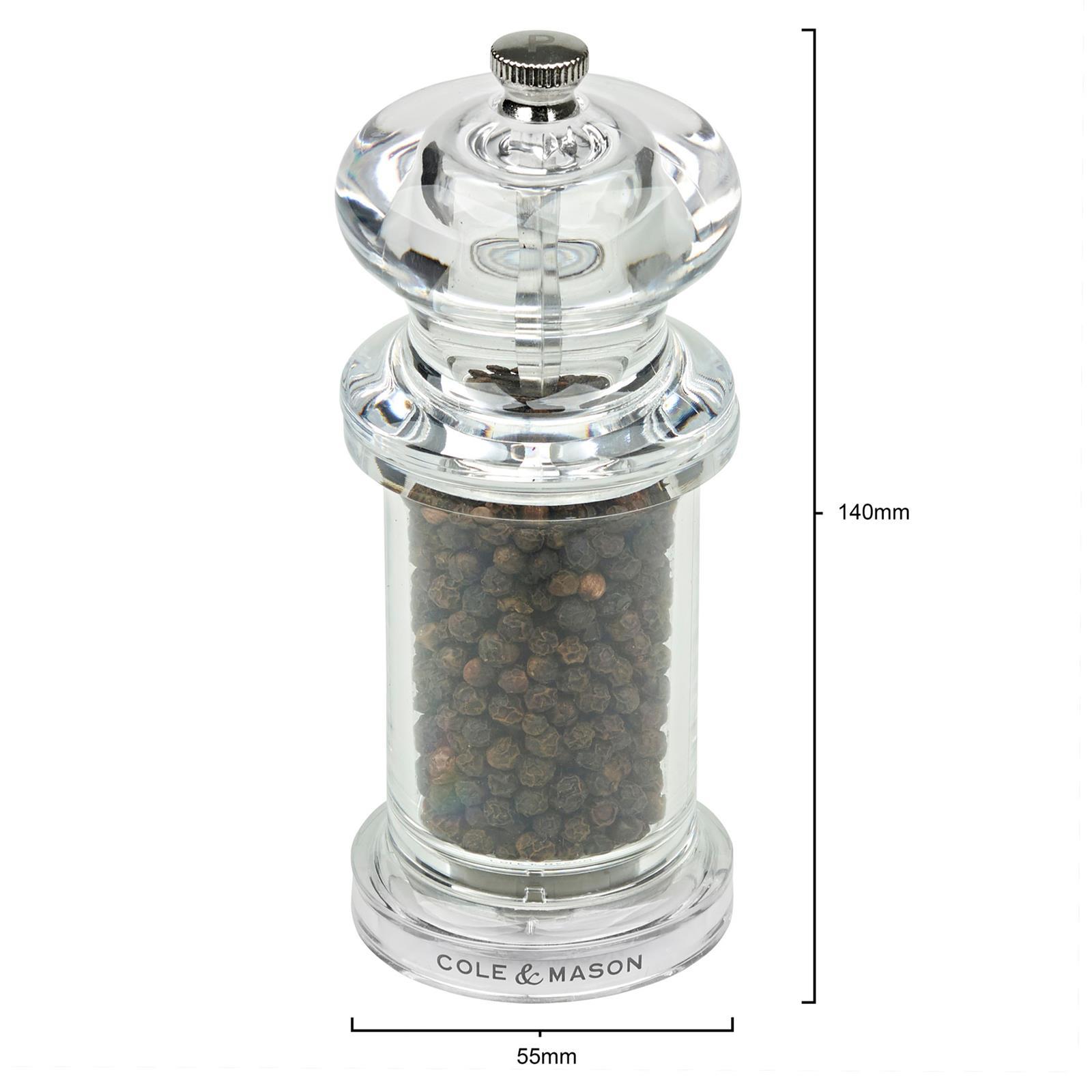 Produkt-Eigenschaften ✓ Kleines manuelles 14 cm Mühlen 2er Set aus kristallklarem Acryl zum Zerkleinern von Salz und Pfeffer