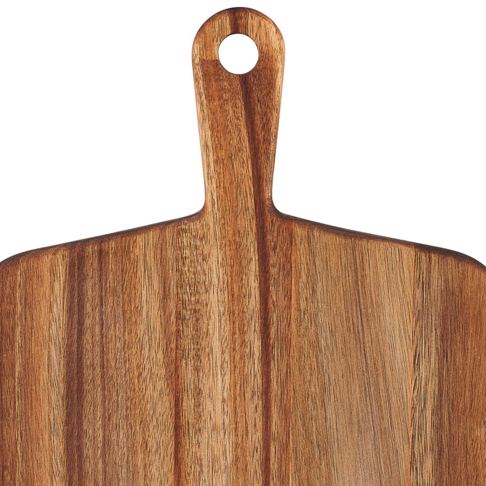 Dieses große ca. 46 x 27 cm Schneidebrett aus gemaserten Akazienholz besticht durch sein natürliches und britisches Aussehen und verfügt über einen Griff mit praktischer Öse zum Aufhängen. Das rechteckige Küchenbrett aus Holz ermöglicht Ihnen einfaches Schneiden, Zerkleinern, Hacken und Würfeln von Gemüse und Obst oder auch kleineren Fleischsorten.