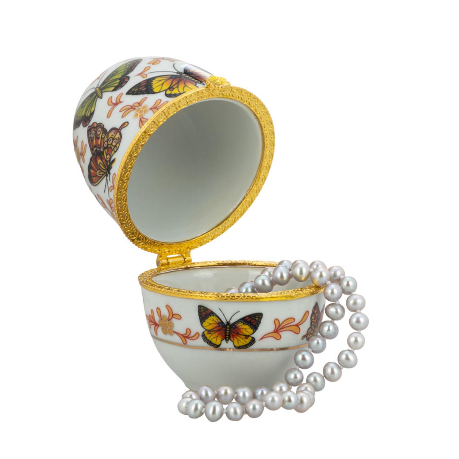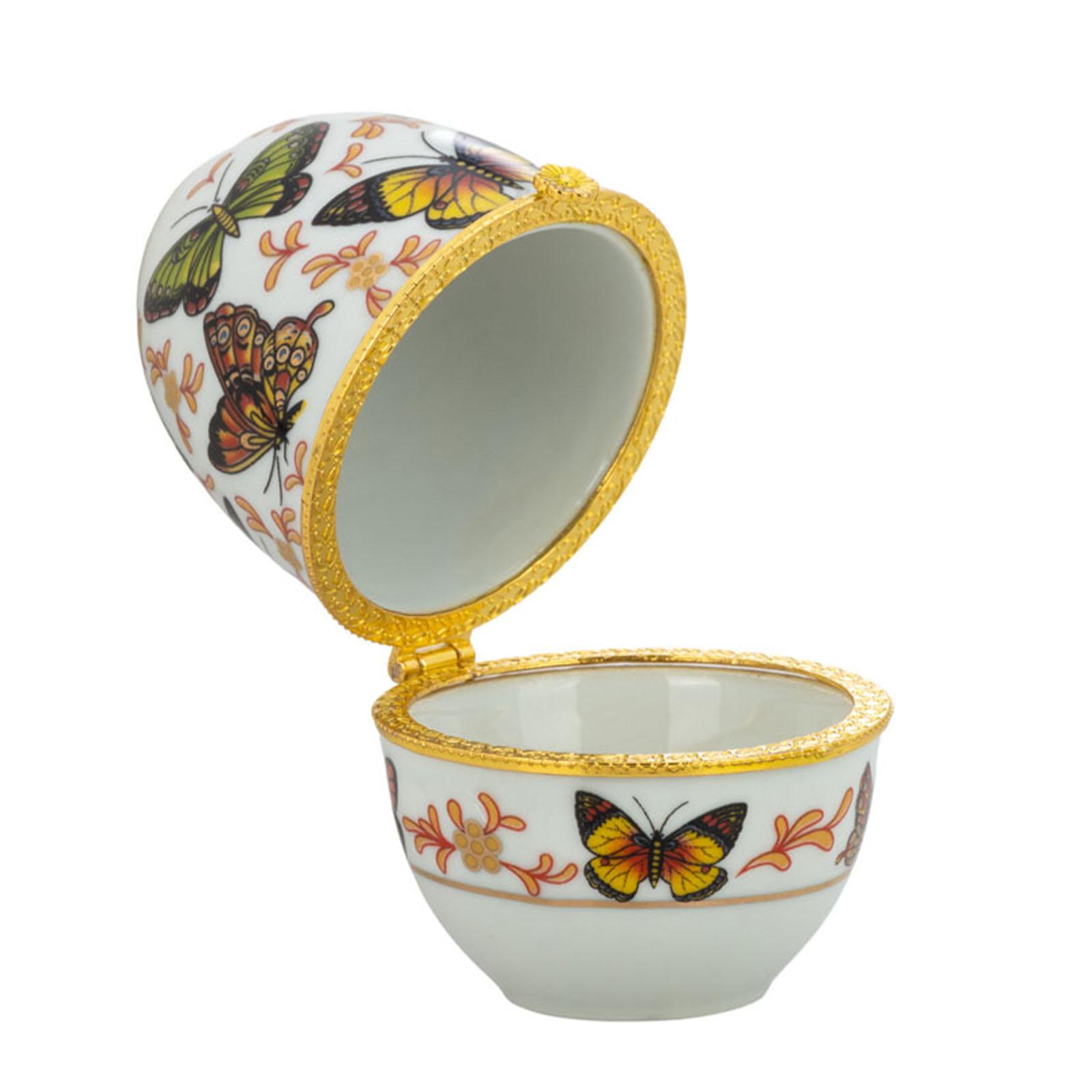 ✓ Dekorative Schmuckdose in Ei-Form mit Schmetterlingen & feinem Goldrand als eleganter Blickfang ✓ Die kleine aufklappbare Porzellan-Dose ist liebevoll gestaltet & lässt sich mit Kleinigkeiten befüllen ✓ Mini Schmuck-Ei mit ca. Ø 6 cm & 8 cm Höhe für platzsparende Aufbewahrung kleinerer Gegenstände ✓ Der Klappdeckel ermöglicht einen schnellen Zugriff & die Aufbewahrung von Ringen und Ohrsteckern ✓ Ideal als Geschenkidee oder dekoratives Schmuckkästchen für persönliche kleine Aufmerksamkeiten