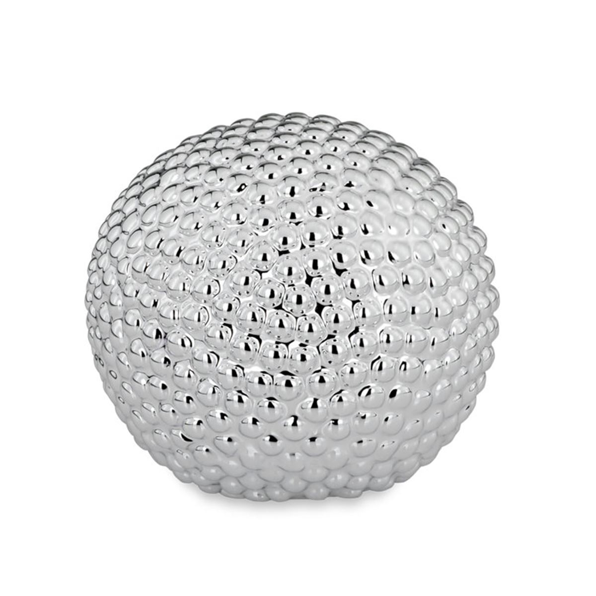 • Höhe ca.: 9 cm • Durchmesser ca.: 9.5 cm • Material: Porzellan • Beschichtung: galvanisiert • Oberfläche: glatt poliert, glänzend • Oberfläche Details: geperlt • spülmaschinengeeignet: nein • Farbe: silber • Funktionalität: Zum Dekorieren von Tisch und Raum • Platzierungsart: Zum Aufstellen • Form: rund • Dimension: klein • Symbolik: Symbolik für Klarheit, Wertigkeit und dezente Eleganz • Look & Stil: Zeitlos, edel, puristisch, fein strukturiert, ausgewogen • Umgebungsnutzung: Für Innenbereich und geschützten Außenbereich • Anlass: Für Raumgestaltung, Tischdeko, Empfang, Saison, Feier • Nutzungsbereich: Tisch, Fensterbank, Eingangsbereich, Theke, Verkaufsfläche • Nutzungsmöglichkeit: Dekorativ platzieren, Fläche betonen, Blickfang schaffen • Gewicht ca.: 0,26 Kg