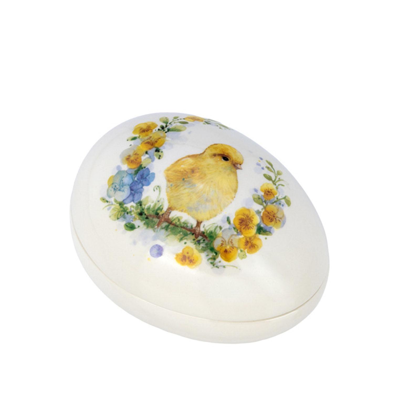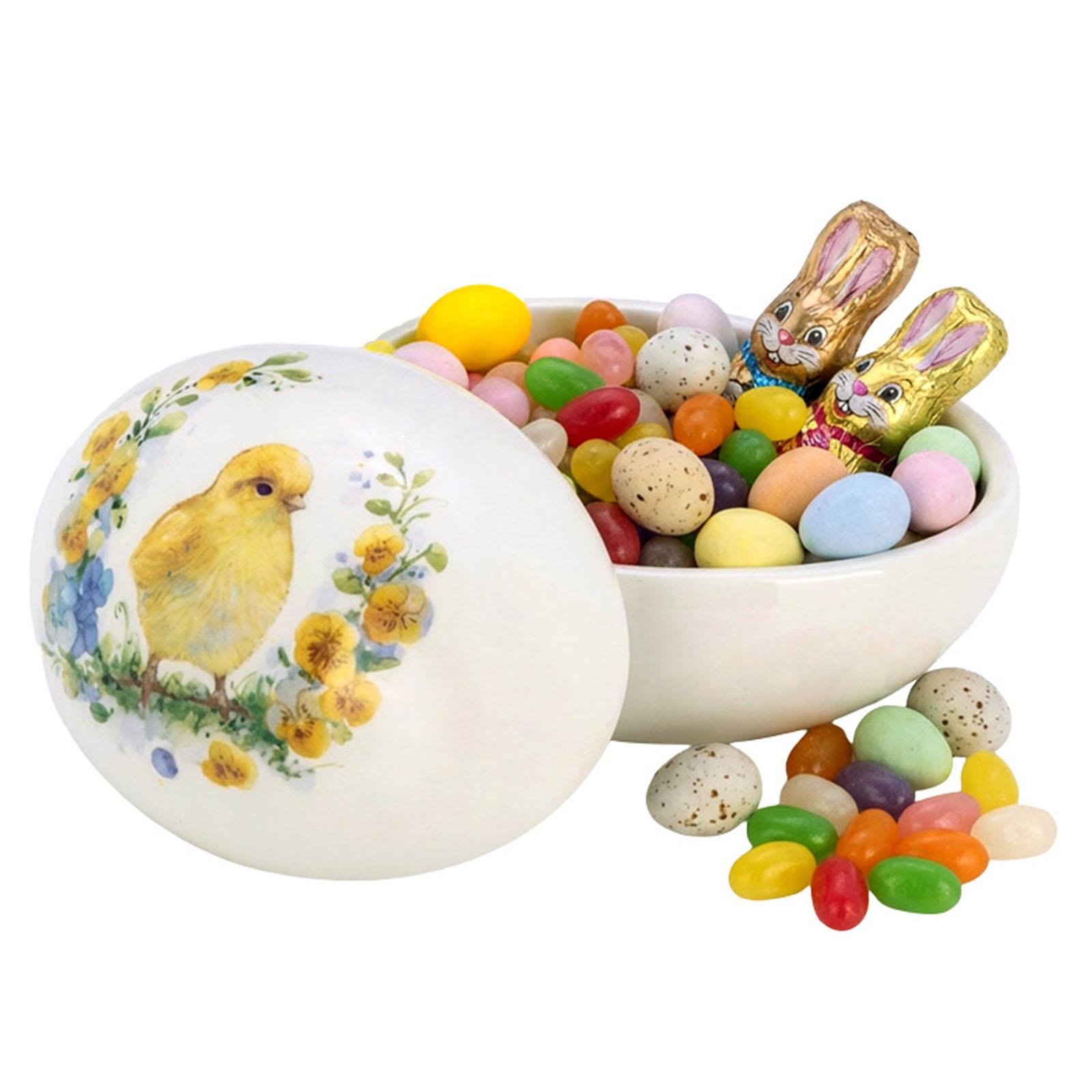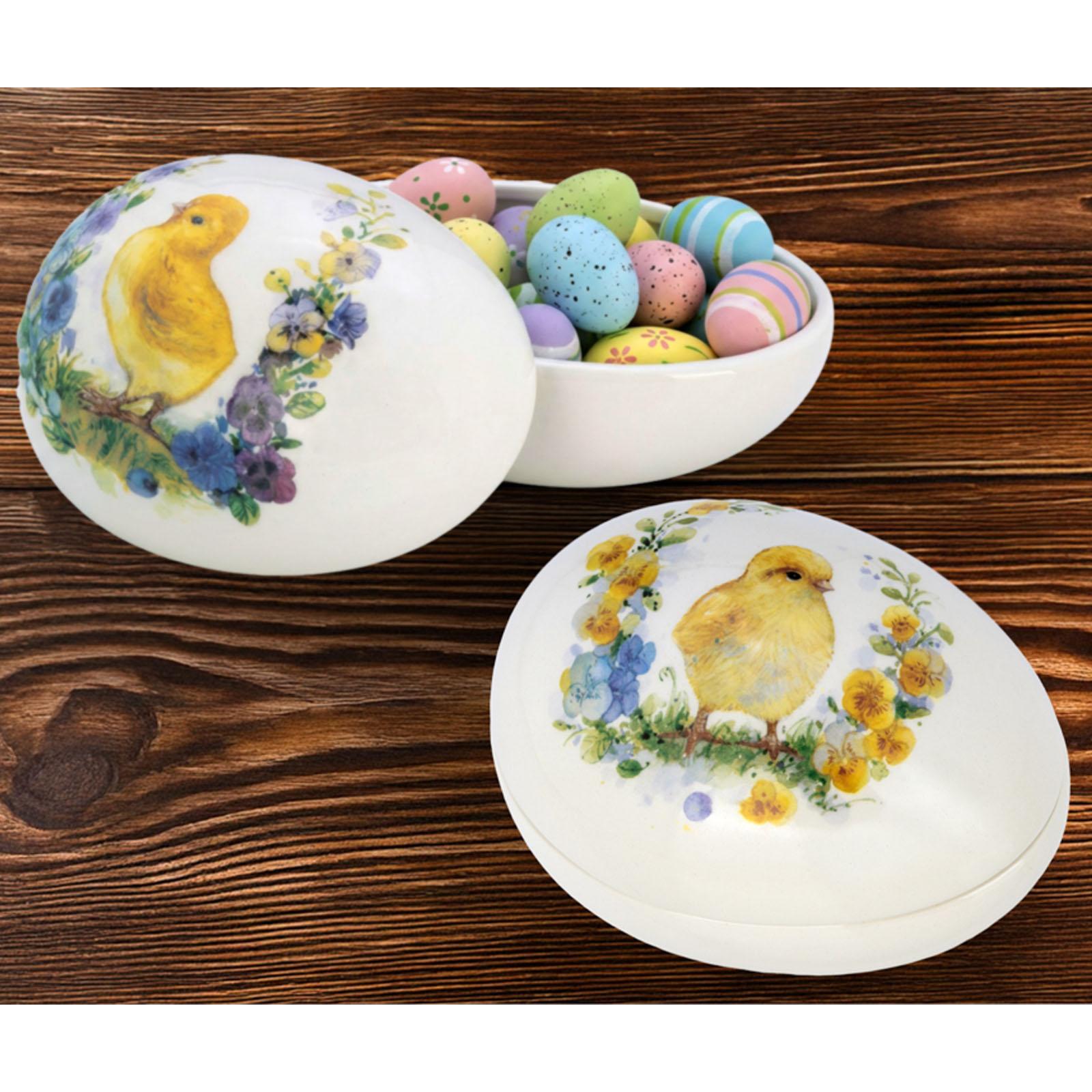 ✓ Osterschale in Ei-Form mit Blumenmotiv und Küken-Dekor für freundliche, frühlingshafte Akzente ✓ Keramikschale mit glatter & glasierter Oberfläche für eine ruhige und harmonische Frühlings-Deko ✓ Deko Dose mit Deckel zum Befüllen mit Süßigkeiten, kleinen Accessoires & saisonalen Elementen ✓ 13,2x9,8 cm Schale kompakt proportioniert - ideal für Tisch, Kommode, Fensterbank und Osterdeko ✓ Tolle Aufmerksamkeit zu Ostern & als zeitlose Ergänzung für klassische und moderne Dekorationen