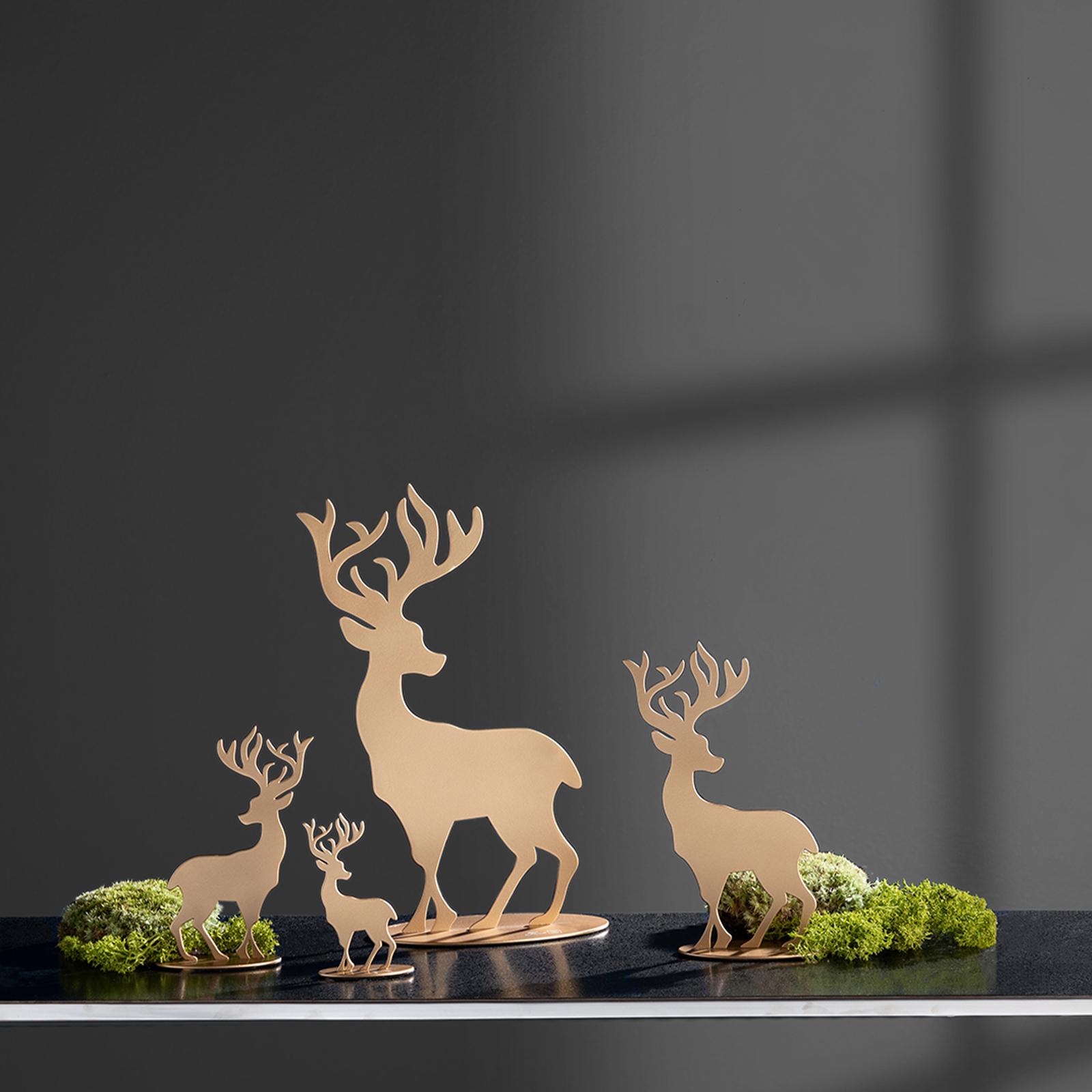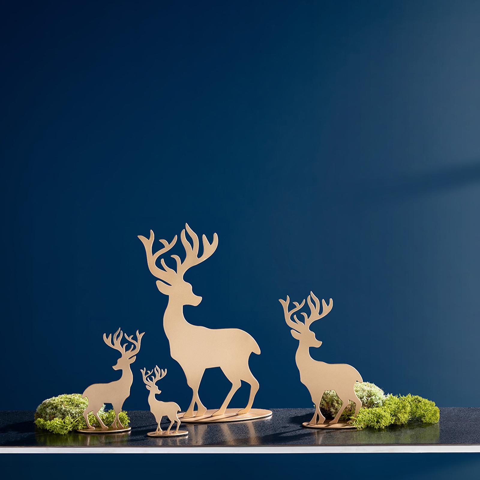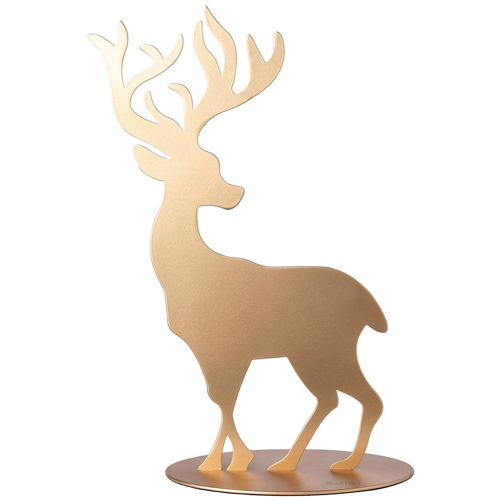 • Länge ca.: 5 cm • Breite ca.: 10 cm • Höhe ca.: 20 cm • Serie: Fink Living • Material: Eisen • Beschichtung: pulverbeschichtet • Oberfläche: matt • Oberfläche Details: glatt • spülmaschinengeeignet: nein • Farbe: goldfarben • Funktionalität: Zum Dekorieren von Tisch und Raum • Platzierungsart: Zum Aufstellen • Form: figürlich • Dimension: groß • Motiv: Hirsch • Umgebungsnutzung: Für Innenbereich • Anlass: Weihnachten, Nikolaus, Adventszeit • Nutzungsbereich: Sideboard, Fensterbank, Tischdekoration, Anrichte • Verwendungshinweis: nur zur Dekoration geeignet - kein Kinderspielzeug