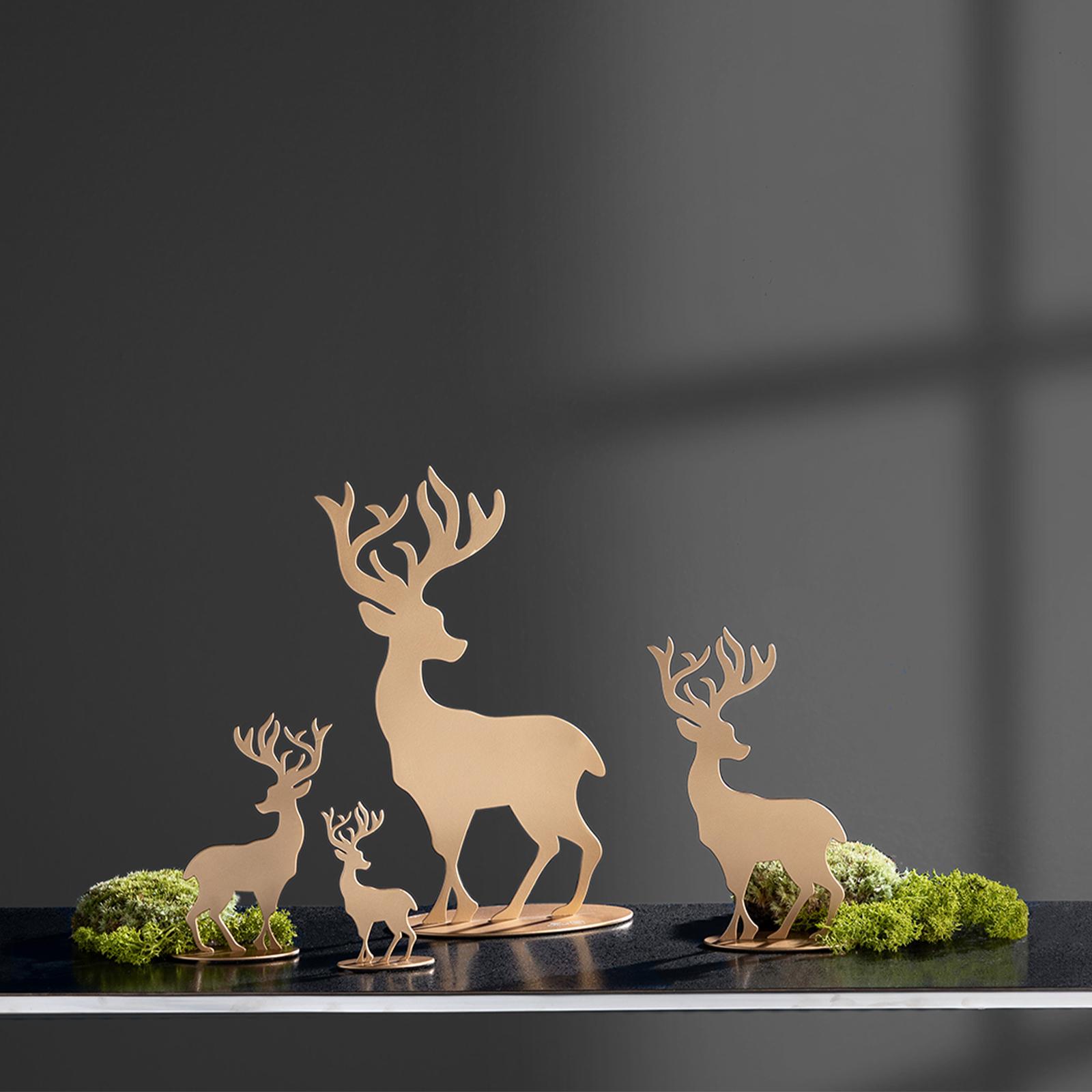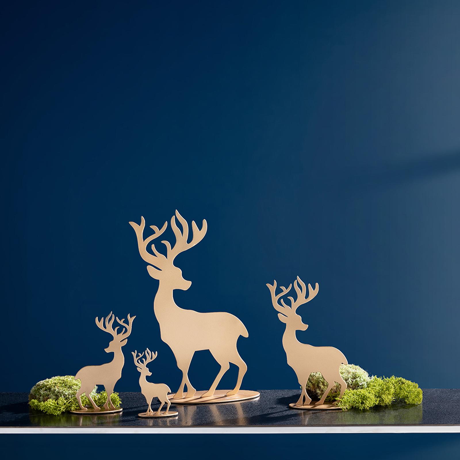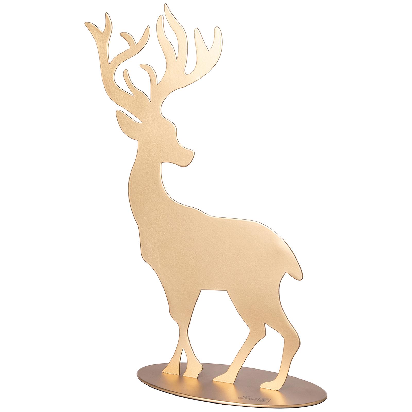 • Länge ca.: 8 cm • Breite ca.: 16 cm • Höhe ca.: 30 cm • Serie: Fink Living • Material: Eisen • Beschichtung: pulverbeschichtet • Oberfläche: matt • Oberfläche Details: glatt • spülmaschinengeeignet: nein • Farbe: goldfarben • Funktionalität: Zum Dekorieren von Tisch und Raum • Platzierungsart: Zum Aufstellen • Form: figürlich • Dimension: extra groß • Motiv: Hirsch • Umgebungsnutzung: Für Innenbereich • Anlass: Weihnachten, Nikolaus, Adventszeit • Nutzungsbereich: Sideboard, Fensterbank, Tischdekoration, Anrichte • Verwendungshinweis: nur zur Dekoration geeignet - kein Kinderspielzeug