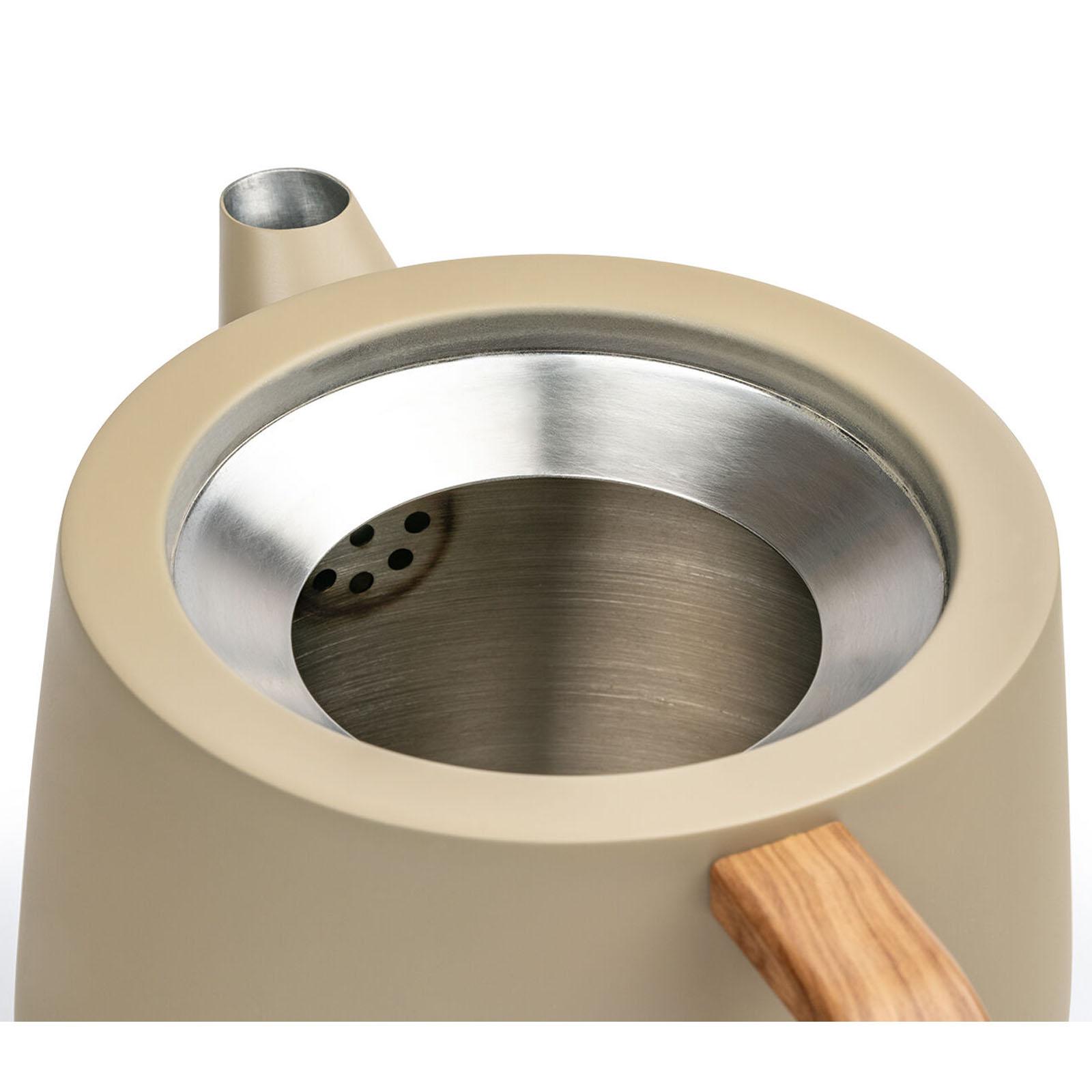 Erleben Sie bewussten Tee-Genuss mit dieser eleganten Teekanne in Beige, die zeitlose und skandinavische Anmutung mit moderner Funktion verbindet. Mit einem Fassungsvermögen von 1,1 Litern eignet sie sich ideal für entspannte Teepausen ebenso wie für gesellige Runden. Die doppelwandige Konstruktion aus Edelstahl hält den Tee lange warm und bewahrt das volle Aroma - perfekt für ausgedehnte Teestunden ohne ständiges Nachgießen.