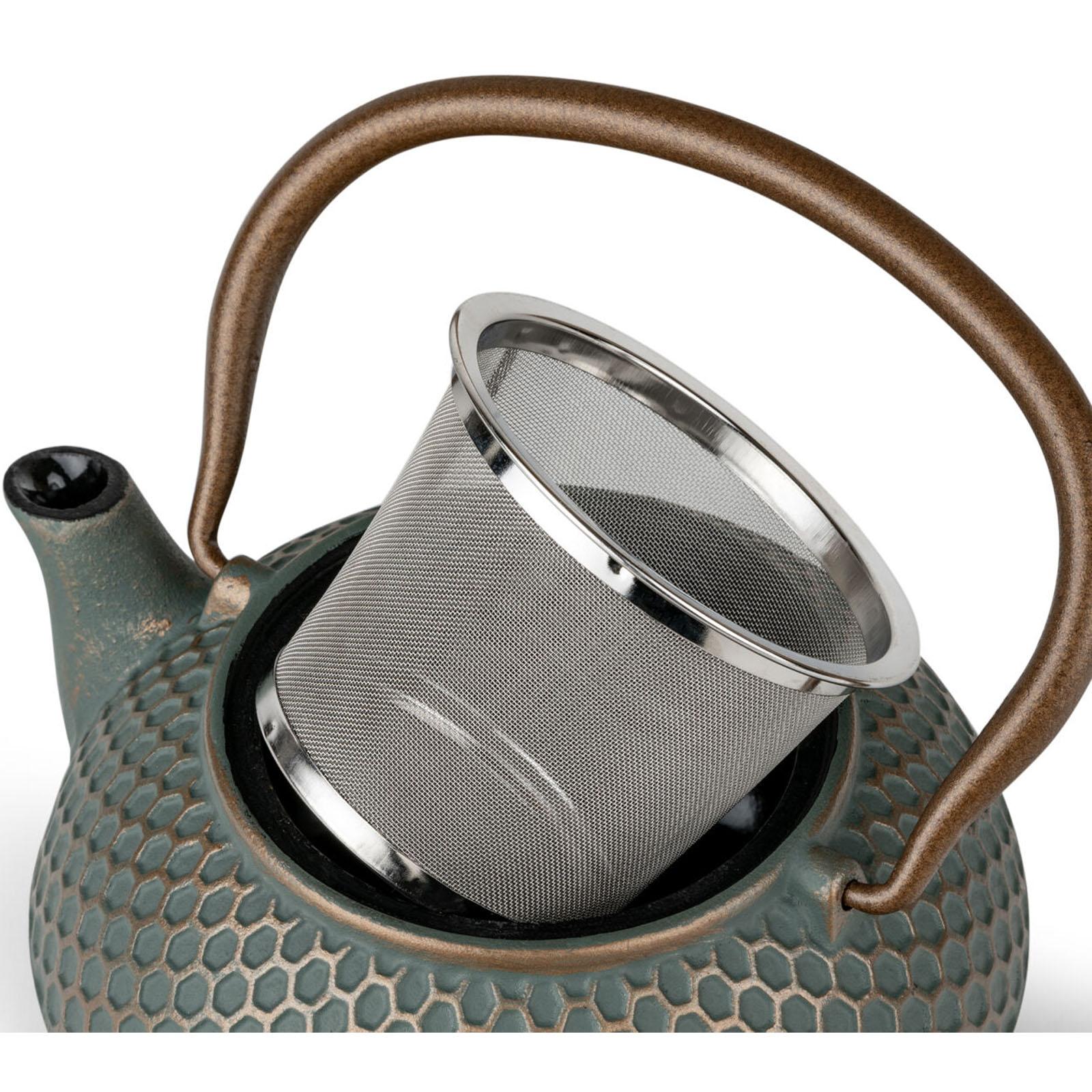 Lassen Sie Ihren Teemoment zu einer kleinen Auszeit werden. Diese Gusseisen-Teekanne mit 0.7 Liter Fassungsvermögen verbindet zarte Gestaltung mit der beständigen Kraft des Materials. Der warme Blauton, ergänzt durch ein fein gearbeitetes, goldfarbenes Wabenmuster, verleiht dieser Kanne eine ruhige Ausstrahlung und macht sie zu einem harmonischen Blickfang auf dem Tisch. Die kompakte Form eignet sich ideal für bewusste Teepausen - am Morgen, am Nachmittag oder in stillen Momenten zwischendurch. Das Gusseisen speichert die Wärme zuverlässig und sorgt dafür, dass der Tee länger heiß bleibt und sein Aroma gleichmäßig entfalten kann. So entsteht ein ausgewogenes Geschmackserlebnis, das zum Verweilen einlädt. Ein feinmaschiger Edelstahl-Teefilter ist bereits integriert und ermöglicht die einfache Zubereitung von losem Tee. Er hält auch feine Teepartikel sicher zurück und ist für die Reinigung in der Spülmaschine geeignet. Diese Teekanne schafft Raum für Ruhe, Achtsamkeit und Genuss - ein stiller Begleiter für alle, die Tee nicht nur trinken, sondern bewusst erleben möchten.