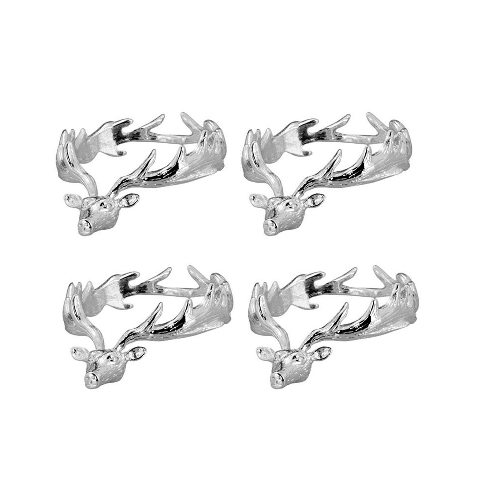 ✓ 4 teilige Serviettenringe in Hirschform für dekorative Akzente auf festlich gedeckten Tafeln & Tischen ✓ Metallausführung mit versilberter Oberfläche für dezente Lichtreflexe und eine elegante Gesamtoptik ✓ Set aus vier Serviettenringen mit ca. 4,5 cm Innendurchmesser für Stoff- und Papierservietten geeignet ✓ Passsend für Weihnachtsdekoration, winterliche Tischgestaltung, private und gewerbliche Anlässe ✓ Vielseitig kombinierbare Tischdekoration und stilvolle Geschenkidee für die Advents- und Winterzeit
