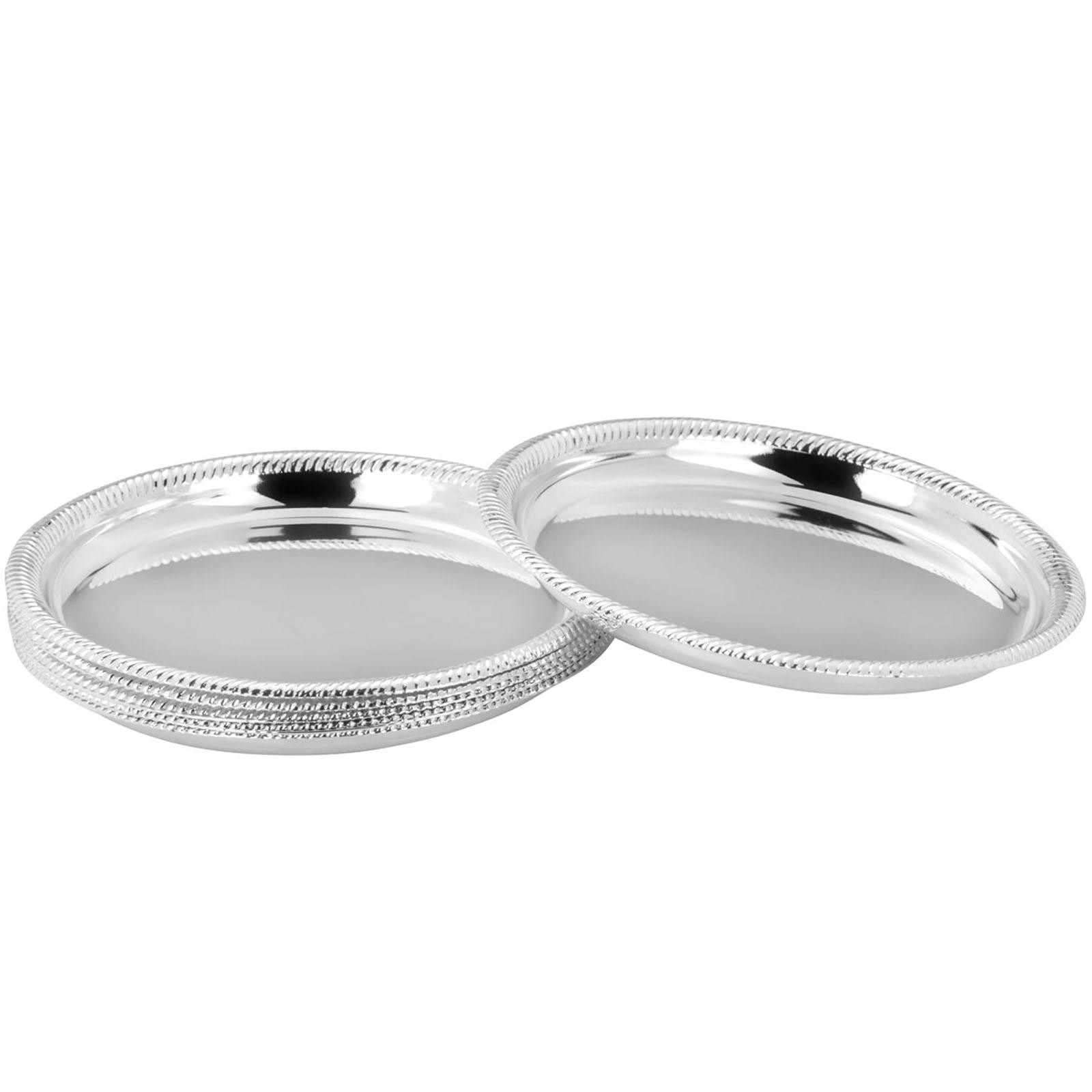 ✓ Kleine Ablageteller als Untersetzer für Gläser, Tassen und kleine Schälchen bei Kaffee, Tee & Dessert ✓ Sechsteiliges Set mit ca. 10,2 cm Durchmesser für gleichmäßige Platzierung von Getränken & Snacks ✓ Runde, versilberte Mini Teller zum Schutz von Tischoberflächen vor Abdrücken und Verschmutzungen ✓ Geeignet für Esszimmer, Wohnzimmer, Buffet und festliche Anlässe bei Einladungen & Gästeempfang ✓ Praktisches Tischaccessoire und Geschenkidee für den Haushalt, neue Wohnung & Tischdekoration