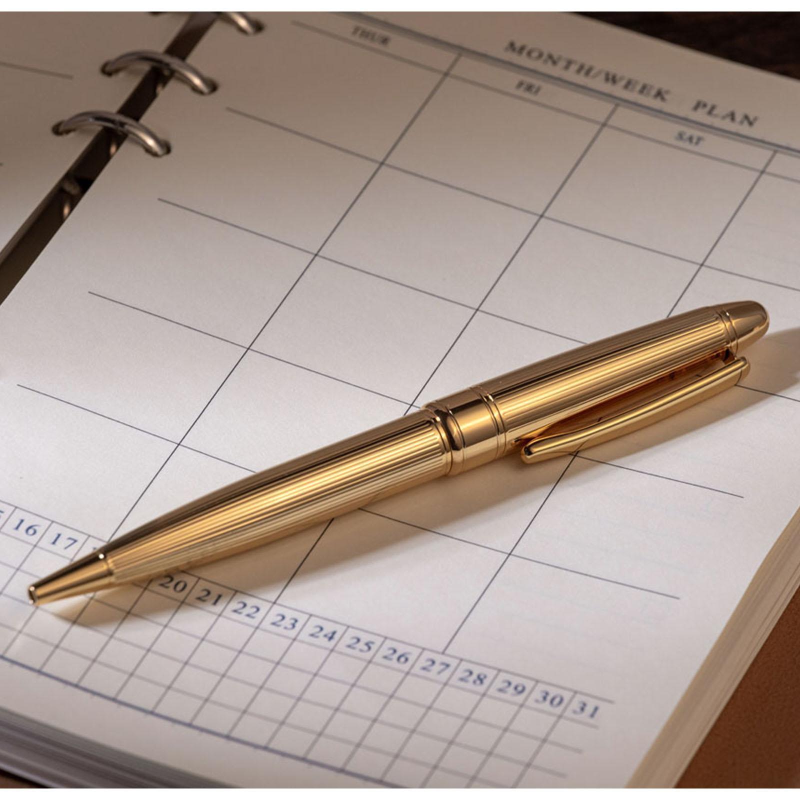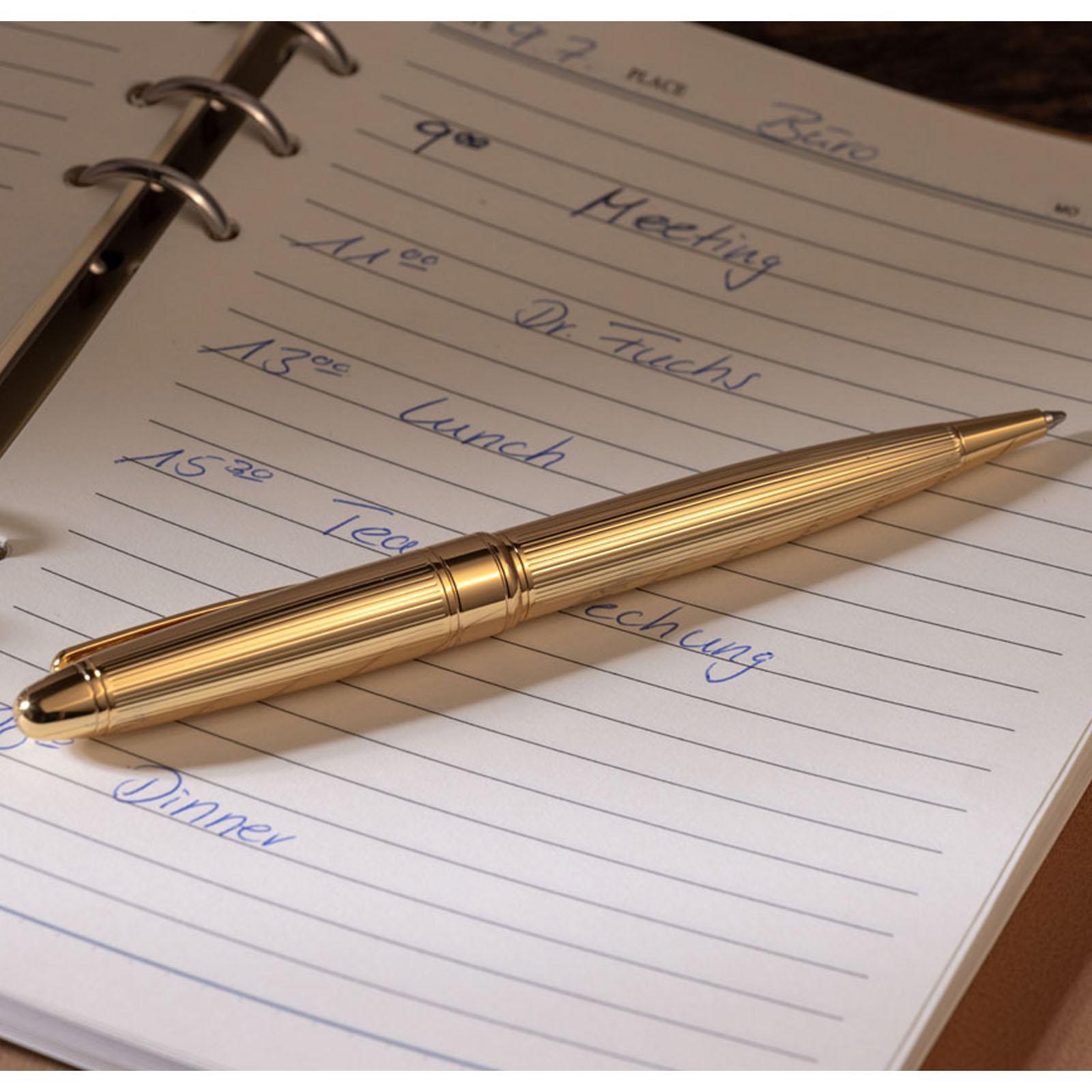 Kugelschreiber 14,5 cm edel vergoldeter Kuli mit Fadendekor & Drehmechanismus