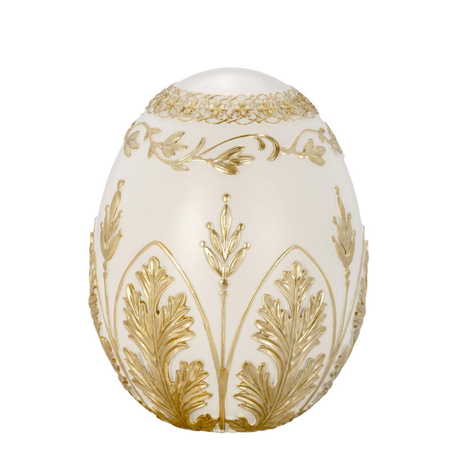 • Länge ca.: 12.4 cm • Breite ca.: 12.2 cm • Höhe ca.: 16.1 cm • Material: Kunststein • Oberfläche Details: verziert • spülmaschinengeeignet: nein • Farbe: weiss-gold • Eigenschaft: Polyresin • Ausstattung: goldene Ornamente • Funktionalität: Zum Dekorieren in der Osterzeit • Platzierungsart: zum Aufstellen • Form: oval • Dimension: mittel • Motiv: Wedgwood Style