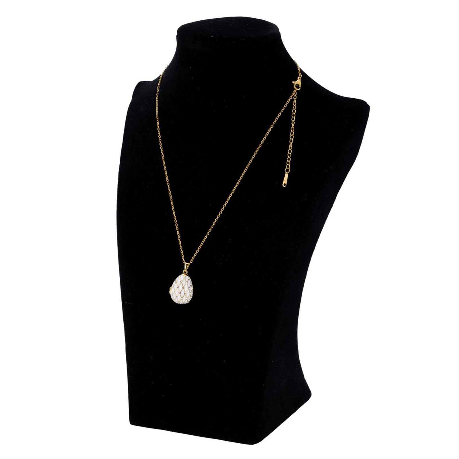 • Länge ca.: 45.0 cm • Detailmaß ca.: Länge mit Ei 50 cm / Ei-Höhe 2.0 cm / Ei-Ø 1.5 cm • Material: Metall • Material 1: Zinkdruckguss • Beschichtung: vergoldet • Oberfläche Details: verziert • spülmaschinengeeignet: nein • Farbe: weiss • Ausstattung: mit Strasssteinen • Ausstattung 1: Anhänger zum Öffnen • Ausstattung 2: Ei-Anhänger mit Schutzengel innen • Funktionalität: Zum Tragen als Schmuckstück am Hals • Platzierungsart: Zum Anlegen am Hals • Dimension: klein • Motiv: Ei