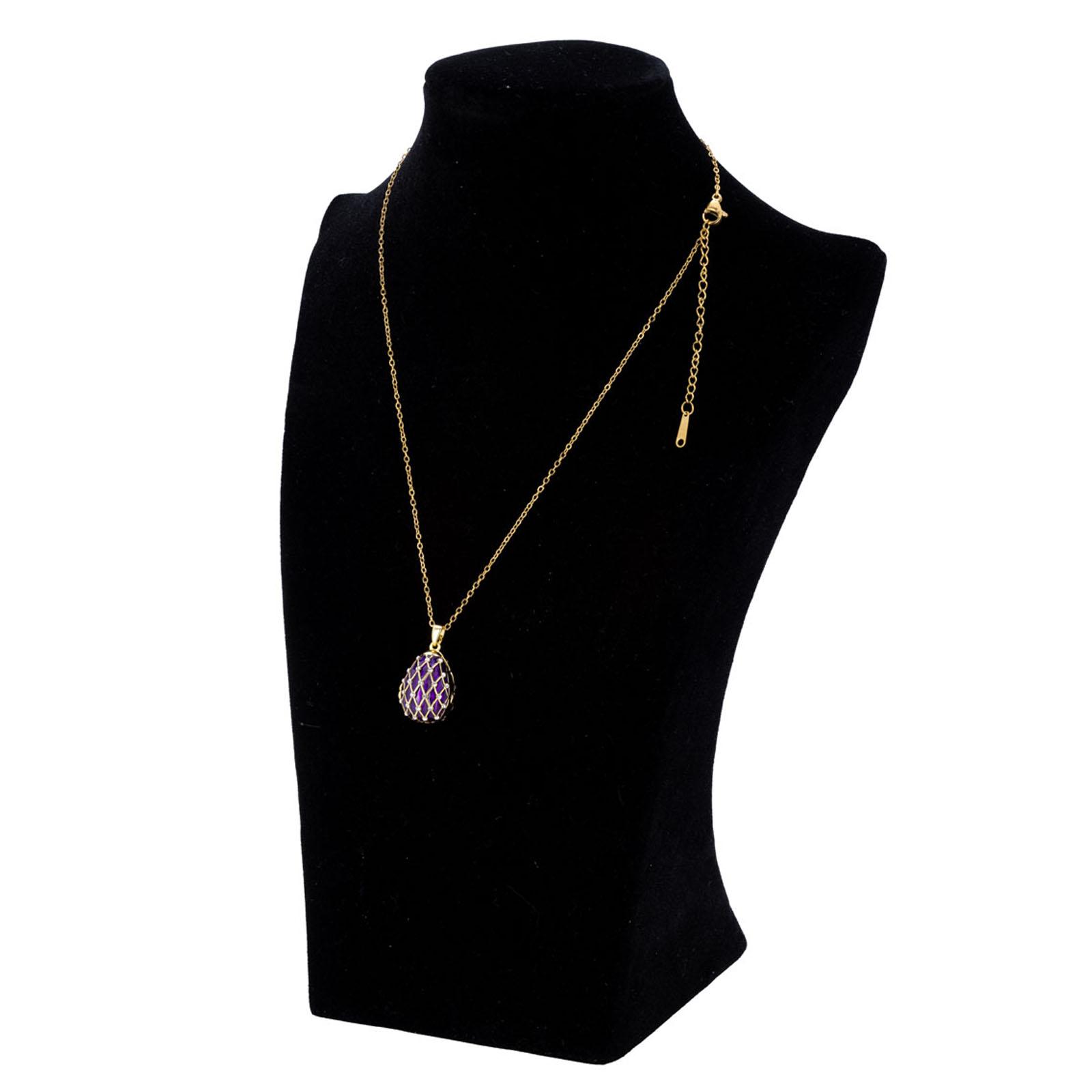 • Länge ca.: 45.0 cm • Detailmaß ca.: Länge mit Ei 50 cm / Ei-Höhe 2.0 cm / Ei-Ø 1.5 cm • Material: Metall • Material 1: Zinkdruckguss • Beschichtung: vergoldet • Oberfläche Details: verziert • spülmaschinengeeignet: nein • Farbe: lila • Ausstattung: mit Strasssteinen • Ausstattung 1: Anhänger zum Öffnen • Ausstattung 2: Ei-Anhänger mit Schutzengel innen • Funktionalität: Zum Tragen als Schmuckstück am Hals • Platzierungsart: Zum Anlegen am Hals • Dimension: klein • Motiv: Ei