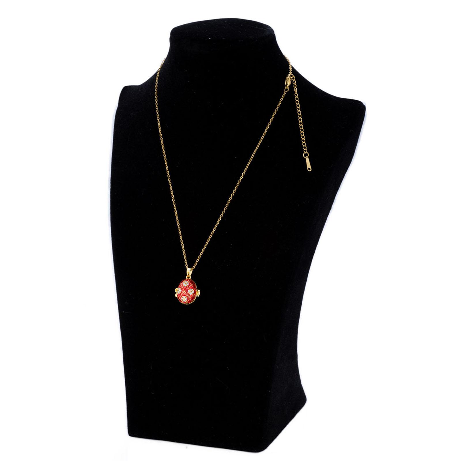 • Länge ca.: 45.0 cm • Detailmaß ca.: Länge mit Ei 50 cm / Ei-Höhe 1.6 cm / Ei-Ø 1.3 cm • Material: Metall • Material 1: Zinkdruckguss • Beschichtung: vergoldet • Oberfläche Details: verziert • spülmaschinengeeignet: nein • Farbe: rot • Ausstattung: mit Strasssteinen • Ausstattung 1: Anhänger zum Öffnen • Ausstattung 2: Ei-Anhänger mit Herz innen • Funktionalität: Zum Tragen als Schmuckstück am Hals • Platzierungsart: Zum Anlegen am Hals • Dimension: klein • Motiv: Herz