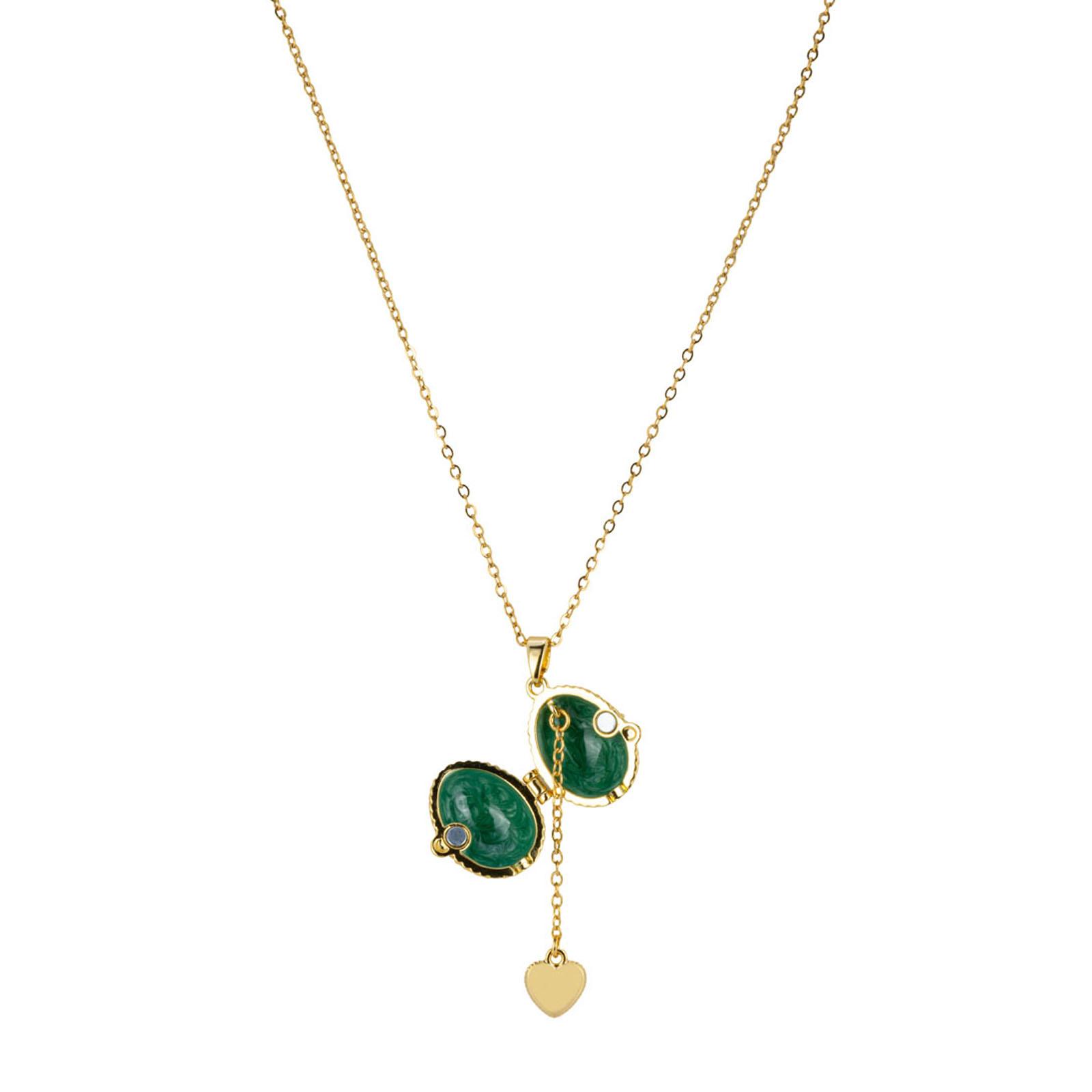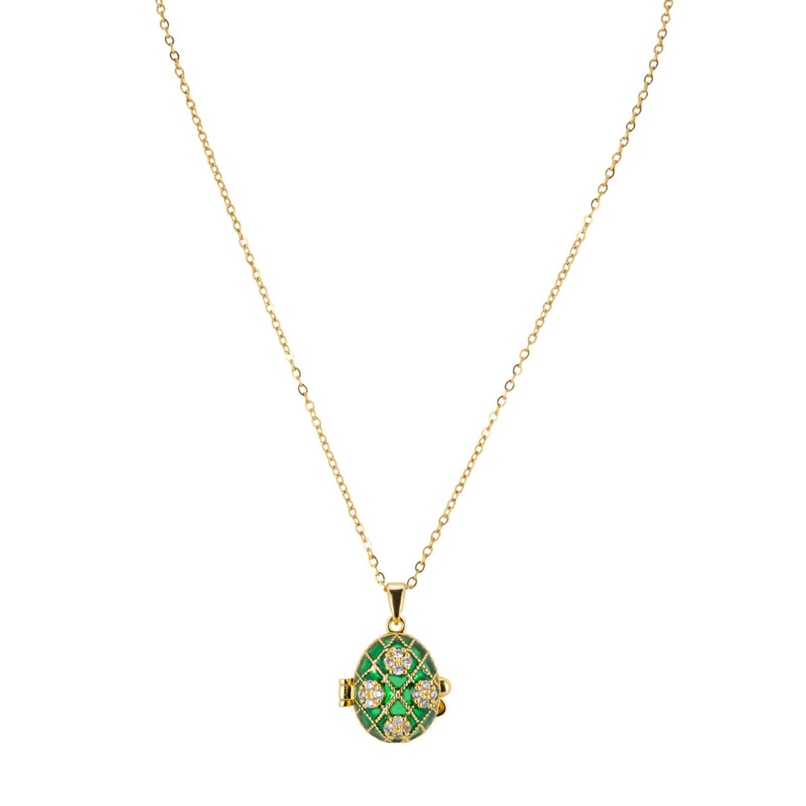 ✓ Aufklappbarer Medaillon Anhänger in Ei-Form in Grün mit einem kleinen Herz innen & Strasssteinen ✓ Die vergoldete Oberfläche verleiht dieser Halskette eine elegante sowie harmonische Schmuckoptik ✓ Diese 45 cm Kette lässt sich in der Länge verstellen und eignet sich für Alltag oder besondere Anlässe ✓ Die Scharniere & fein ausgearbeitete Details sorgen für angenehmes Öffnen & Tragen des Anhängers ✓ Ideal als Geschenkidee für Geburtstage & als persönliche Aufmerksamkeit für besondere Menschen