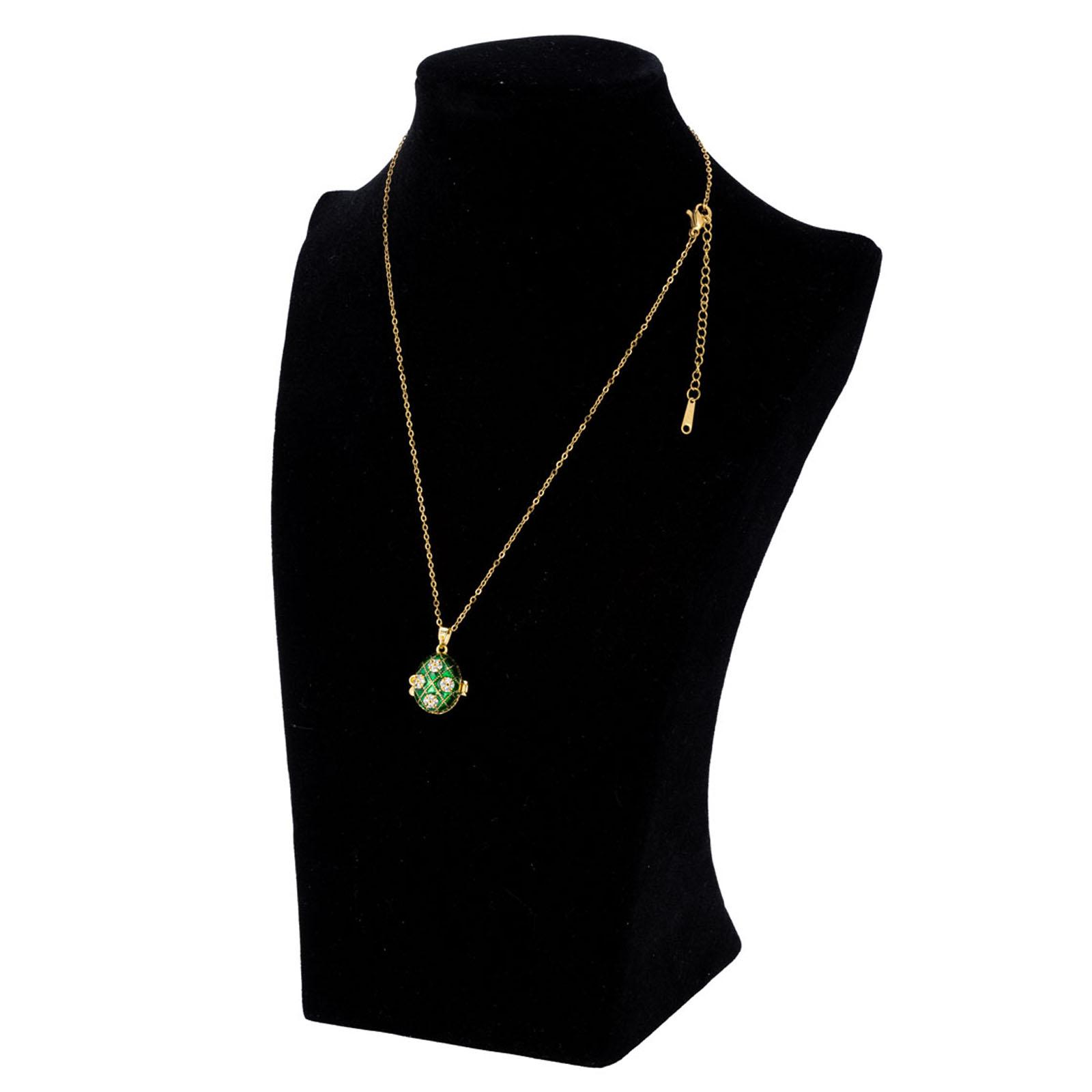 • Länge ca.: 45.0 cm • Detailmaß ca.: Länge mit Ei 50 cm / Ei-Höhe 1.6 cm / Ei-Ø 1.3 cm • Material: Metall • Material 1: Zinkdruckguss • Beschichtung: vergoldet • Oberfläche Details: verziert • spülmaschinengeeignet: nein • Farbe: grün • Ausstattung: mit Strasssteinen • Ausstattung 1: Anhänger zum Öffnen • Ausstattung 2: Ei-Anhänger mit Herz innen • Funktionalität: Zum Tragen als Schmuckstück am Hals • Platzierungsart: Zum Anlegen am Hals • Dimension: klein • Motiv: Herz