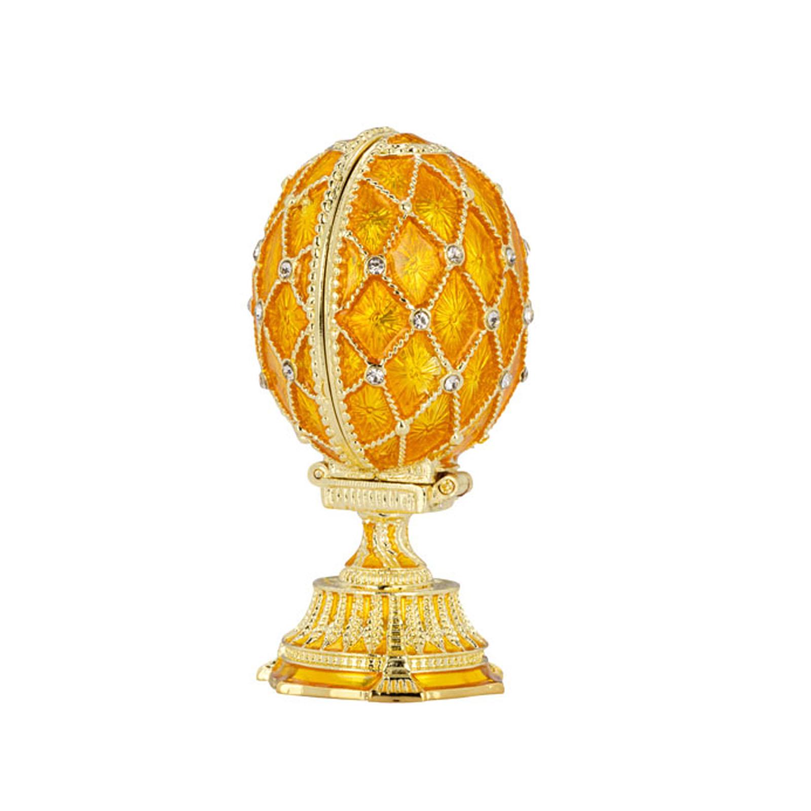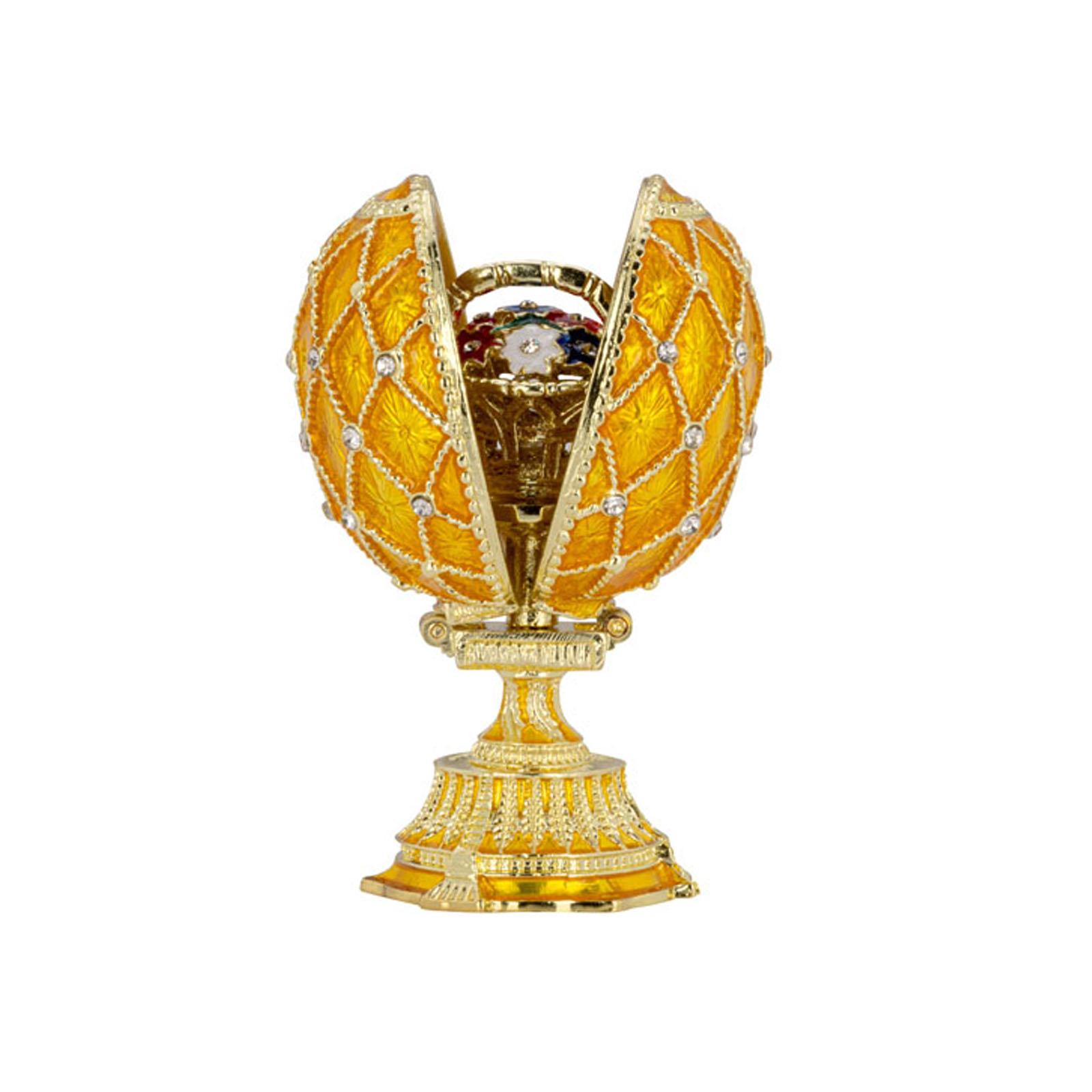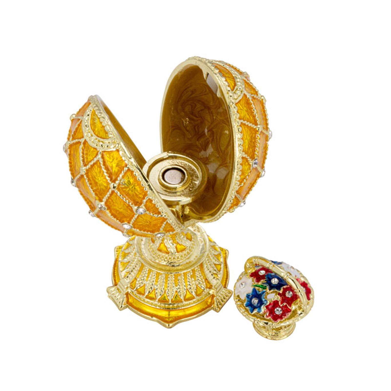 ✓ Dekoratives Schmuckei in gelber Ei-Form mit entnehmbaren Blumen-Bouquet im Inneren, auf Sockel ✓ Kleine aufklappbare Schmuckdose aus emailliertem Zinkdruckguss mit fein ausgearbeiteten Details ✓ Die kompakte Größe mit ca. 7 cm Höhe ist ein Blickfang auf dem Tisch, dem Sideboard & dem Regal ✓ Innenfach flexibel nutzbar zur Aufbewahrung kleiner Schmuckstücke wie Ringe, Ohrringe oder Ketten ✓ Vergoldete Mini Ei-Dose als Geschenkidee & stilvolle Dekoration für Wohn- & Präsentationsbereiche