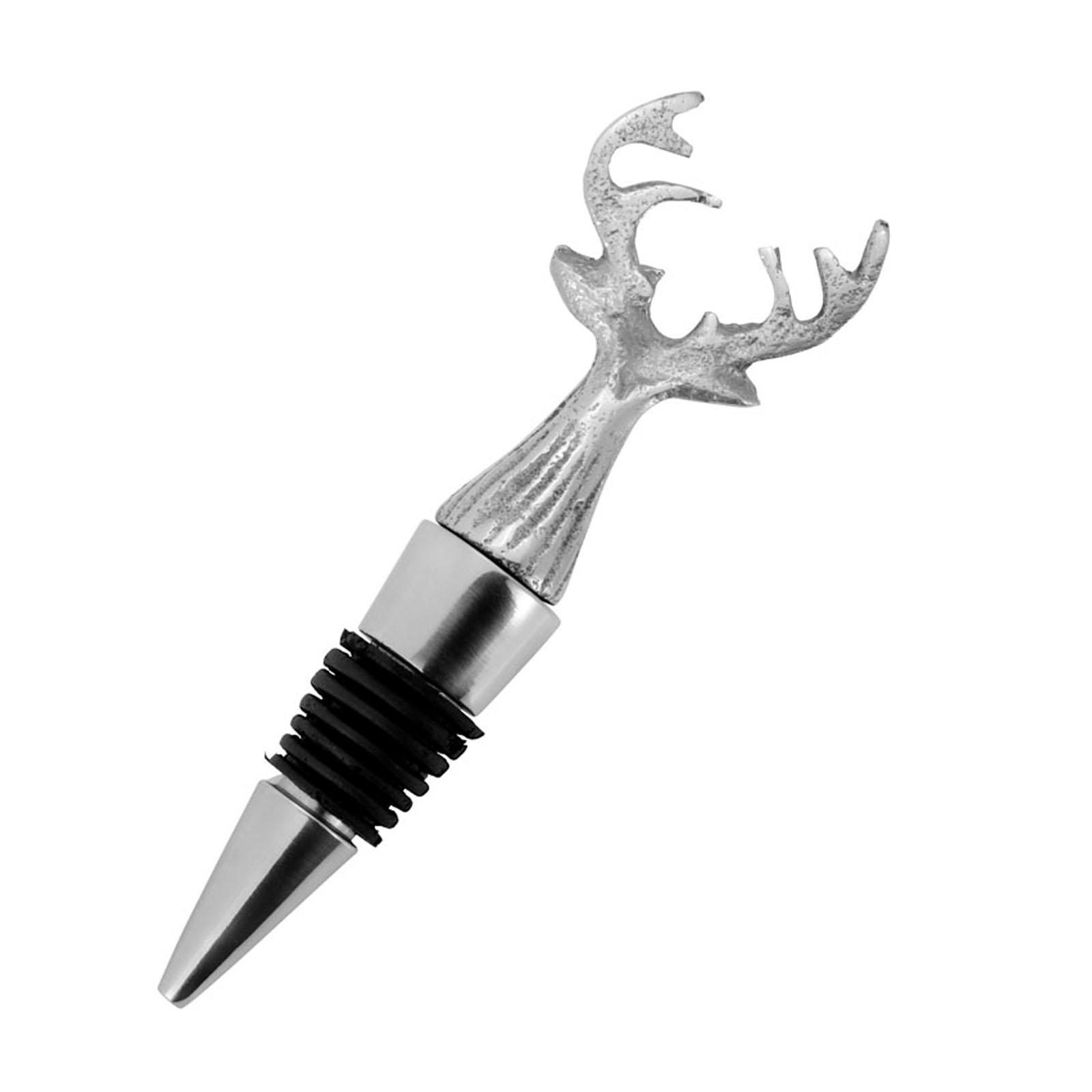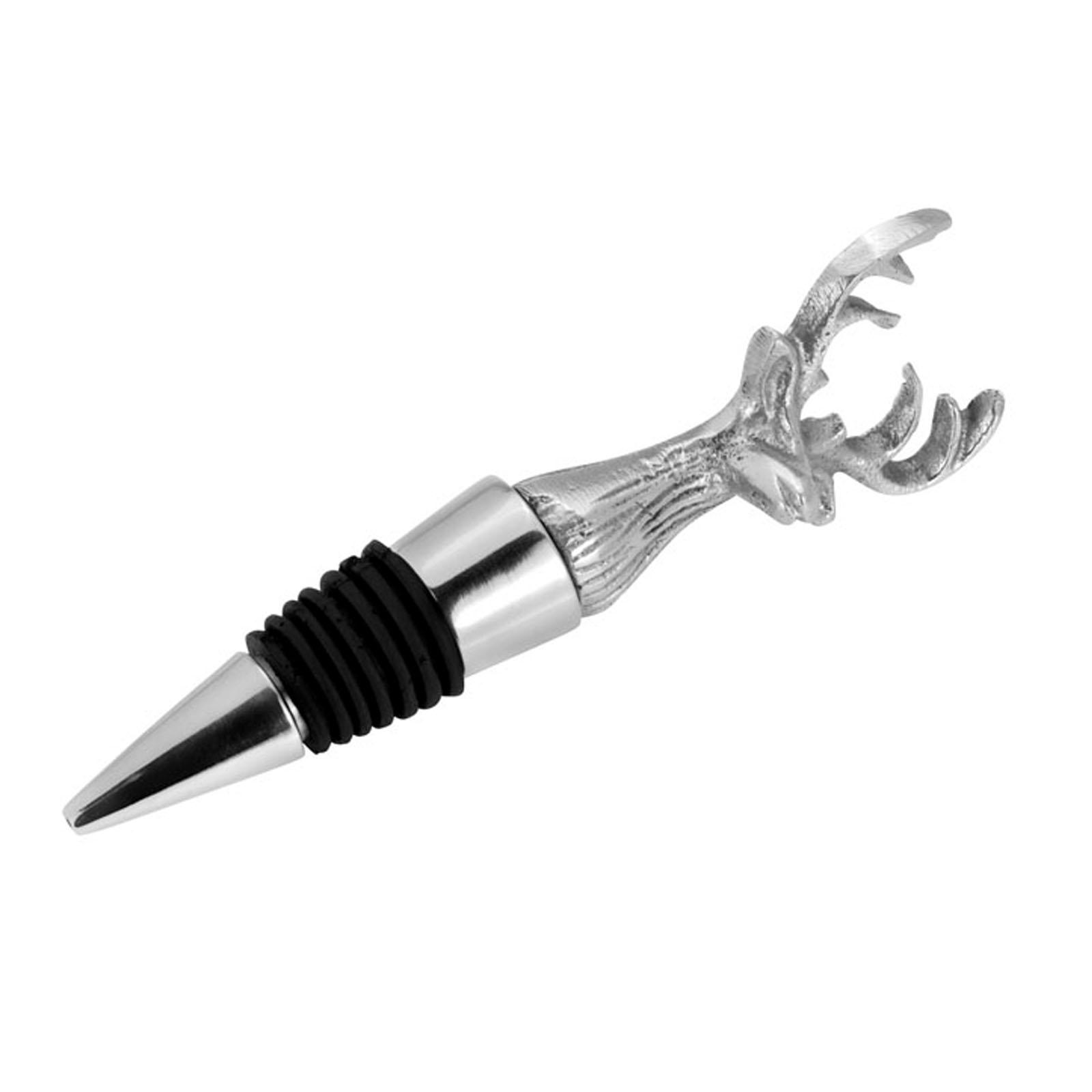 • Länge ca.: 14.0 cm • Breite ca.: 4.0 cm • Höhe ca.: 3.0 cm • Material: Aluminium • Material 1: Silikon • Beschichtung: Aluminium • Oberfläche: glatt poliert • spülmaschinengeeignet: nein • Farbe: silber • Funktionalität: Zum Verschließen von Flaschen - dekorativ • Dimension: klein • Motiv: Hirschkopf