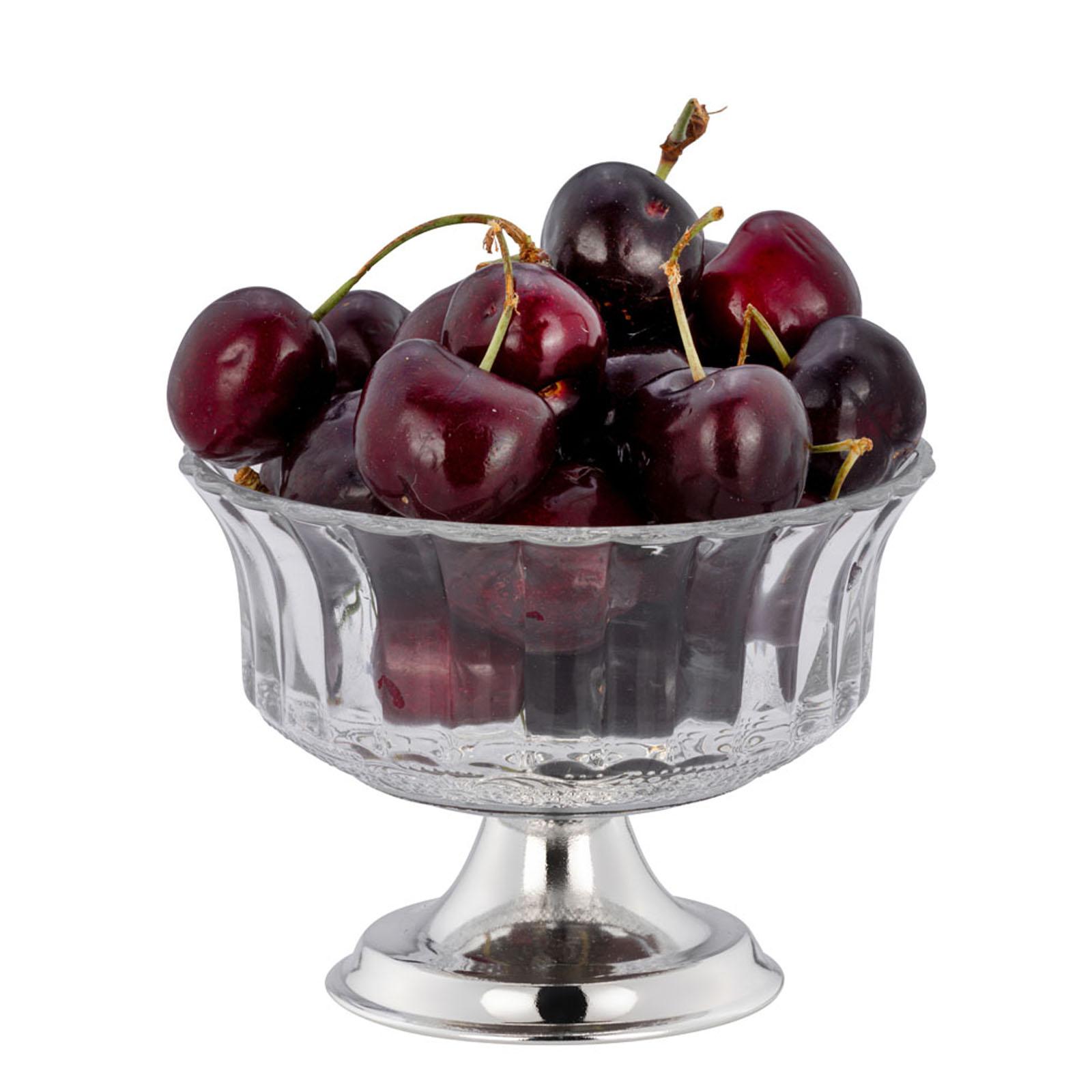 • Länge ca.: 11.0 cm • Breite ca.: 11.0 cm • Höhe ca.: 8.0 cm • Durchmesser ca.: 11.0 cm • Detailmaß ca.: Fuß Ø 3.0 cm • Material: Metall • Material 1: Glas • Beschichtung: versilbert • Veredelung: anlaufgeschützt • Oberfläche: glatt poliert • spülmaschinengeeignet: nein • Farbe: silber • Ausstattung: auf Fuß stehend • Dimension: klein