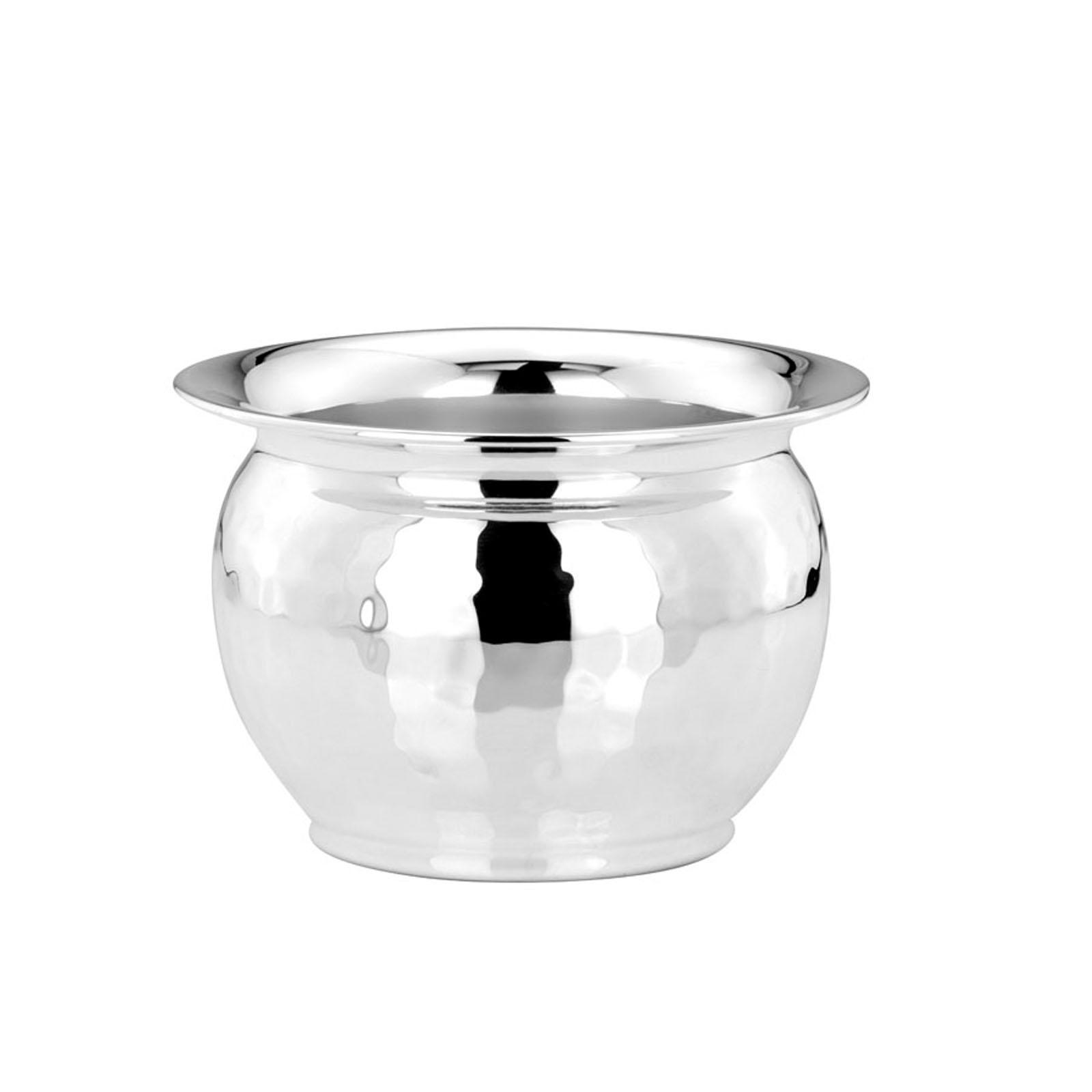• Länge ca.: 13.0 cm • Breite ca.: 13.0 cm • Höhe ca.: 8.5 cm • Durchmesser ca.: 13.0 cm • Material: Metall • Beschichtung: versilbert • Veredelung: anlaufgeschützt • Oberfläche: glatt poliert • Oberfläche Details: gehämmert • spülmaschinengeeignet: nein • Farbe: silber • Funktionalität: Zum Überstülpen von Pflanztöpfen • Dimension: klein