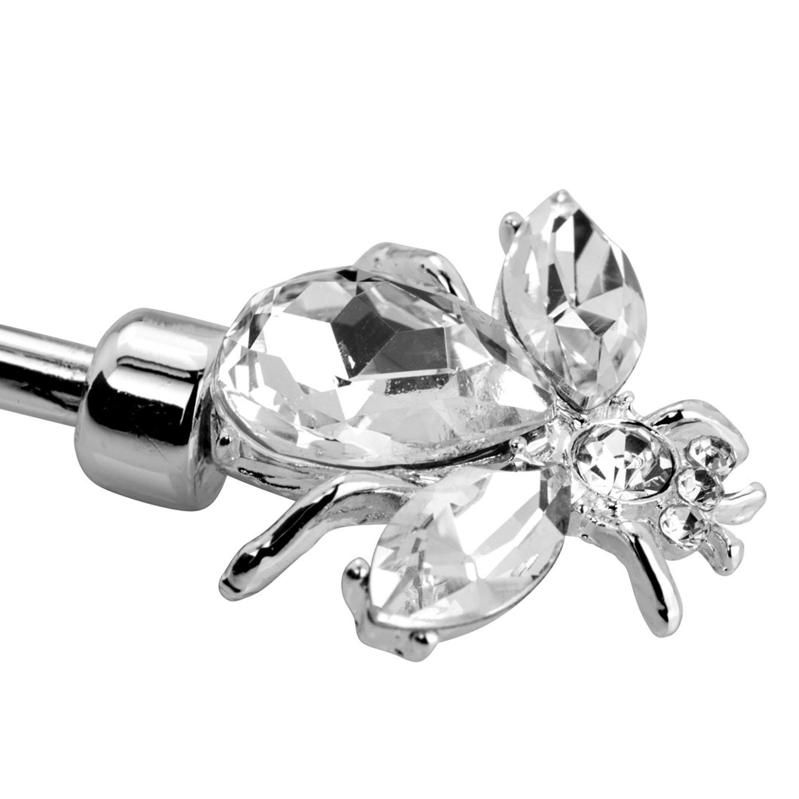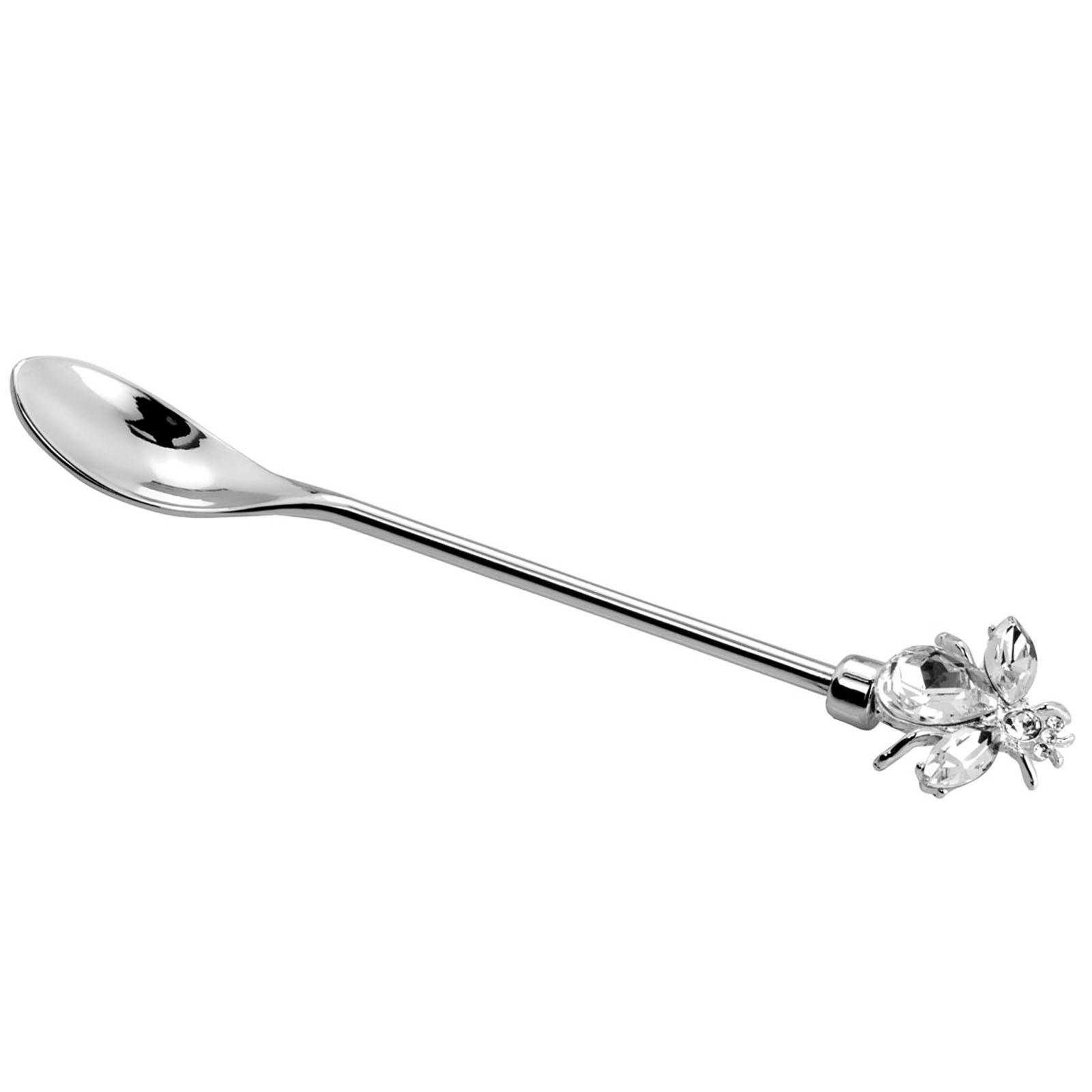 • Länge ca.: 12.0 cm • Breite ca.: 2.0 cm • Höhe ca.: 0.8 cm • Material: Metall • Material 1: Zirkonia • Beschichtung: versilbert • Veredelung: anlaufgeschützt • Oberfläche: glatt poliert • spülmaschinengeeignet: nein • Farbe: silber • Motiv-Design: mit Biene am Griff