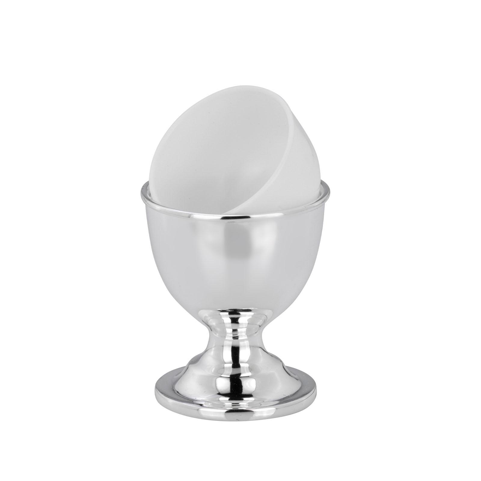 • Länge ca.: 5.4 cm • Breite ca.: 4.7 cm • Höhe ca.: 5.4 cm • Durchmesser ca.: 4.7 cm • Material: Metall • Beschichtung: versilbert • Veredelung: anlaufgeschützt • Oberfläche: glatt poliert • spülmaschinengeeignet: nein • Farbe: silber • Eigenschaft: Inlay herausnehmbar • Ausstattung: mit Kunststoff-Einsatz • Ausstattung 1: auf Fuß stehend • Form: eiförmig • Dimension: klein • Setumfang: 2-teilig