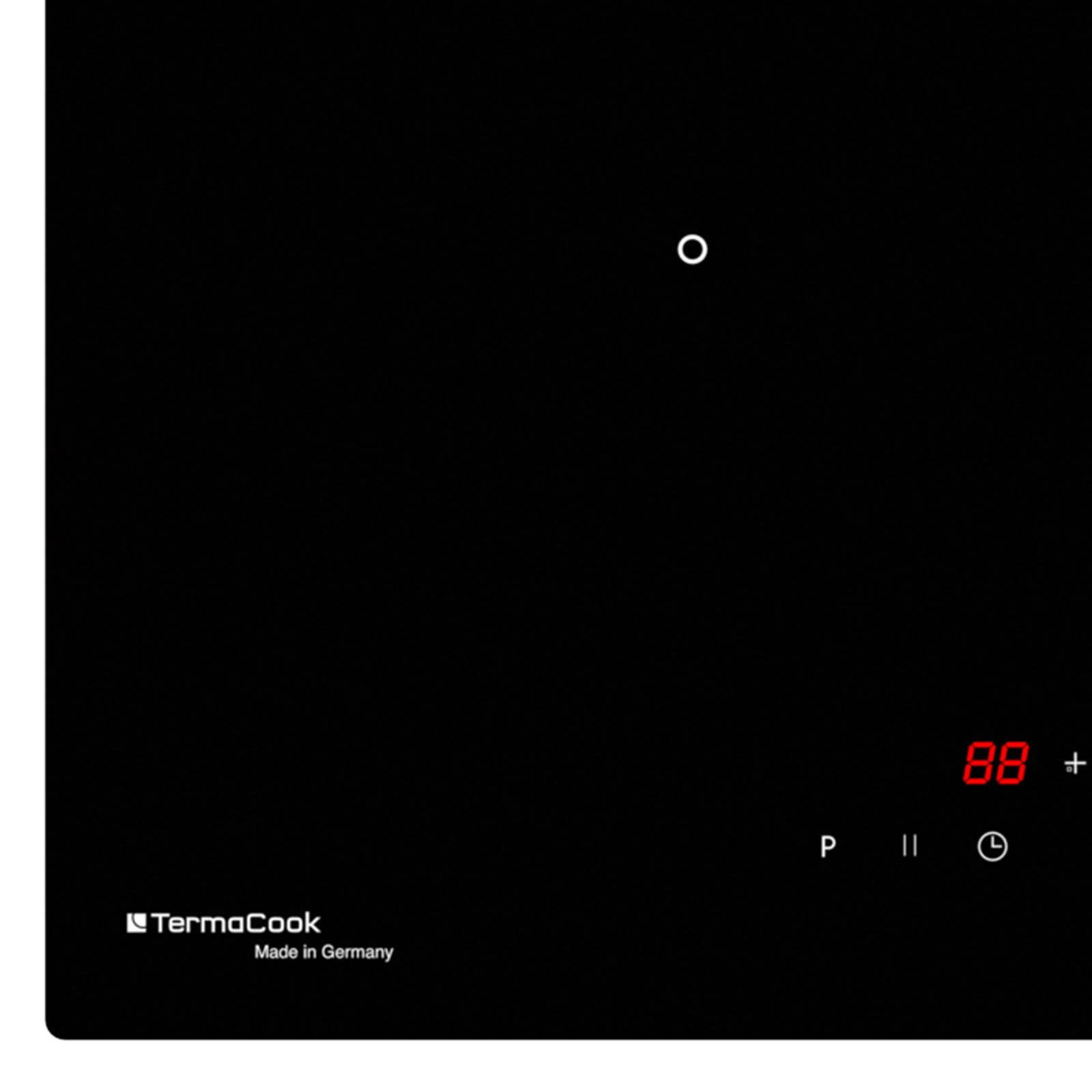 TermaCook - Küchentechnologie mit Anspruch. Seit 2012 steht TermaCook für Innovation Made in Germany: moderne Induktionskochfelder, präzise Technik und durchdachtes Design, die Kochen einfacher, flexibler und sicherer machen. Dieses 60 cm Induktionskochfeld punktet mit seiner Mono Touch Slider-Bedienung, die eine präzise Steuerung aller Kochzonen ermöglicht. Die automatische Topferkennung sorgt für Energieeffizienz, während Booster und voreingestellte Kochstufen den Kochprozess beschleunigen. Praktische Features wie Timer, Stop & Go (Pausenfunktion) und Memory erhöhen den Komfort. Dank Kindersicherung und Überhitzungsschutz ist das Gerät besonders sicher. Ein kompaktes, leistungsstarkes Kochfeld für moderne Küchen.