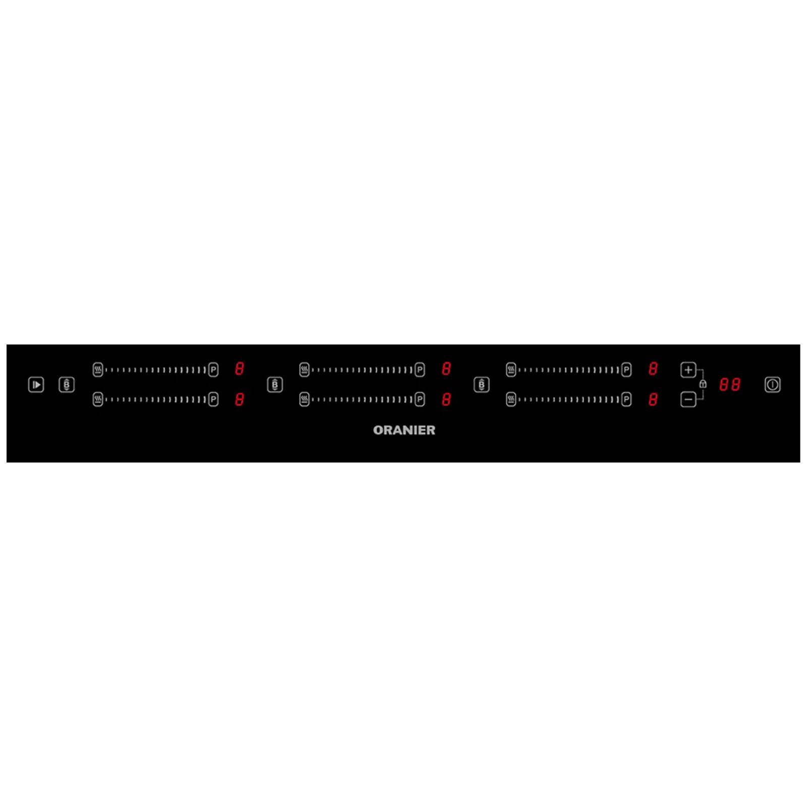 ☛ Einbauvarianten flächenbündig aufgelegt auf die Arbeitsplatte auf Arbeitsplatte mit Edelstahl- oder schwarzen Seitenleisten ☛ Sicherheit Kindersicherung Überlaufschutz Überhitzungsschutz Restwärmeanzeige Betriebsdauerbegrenzung ☛ Ausstattung 9 Leistungsstufen je Kochzone je Kochzone ein Slider Topfgrößenerkennung 6-fach Booster 6-fach Timer Brückenfunktion links, mitte & rechts Pausenfunktion Topferkennung Warmhaltestufe LED Anzeige in rot ☛ Kochzonen 6 Induktions-Kochzonen vorne links & rechts 240 x 200 mm 2.1 kW hinten links & rechts 240 x 200 mm 2.1 kW Maxi-Zone links & rechts 240 x 400 mm, 3.4 kW Maxi-Mitte 240 x 400 mm, 3.4 kW Mitte vorne 240 x 200 mm, 2.1 kW Mitte hinten 240 x 200 mm, 2.1 kW ☛ Besonderheiten Ausschnittmaße: 860/490 mm Montieren Sie das Kochfeld nicht über Unterbaugräte wie: Geschirrspüler Kühlgeräte Volleckdrehschränken