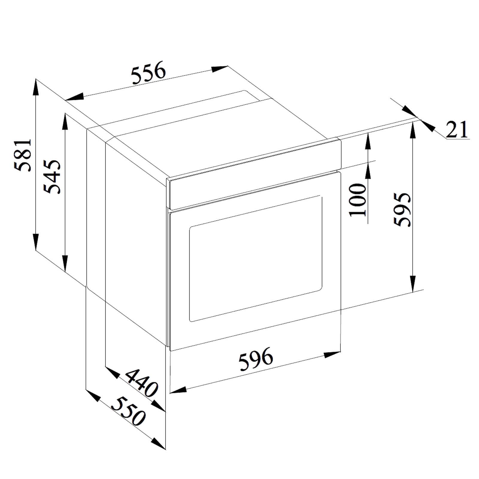 Die kompakten Gerätemaße von 596 x 595 x 569 mm (B x H x T) ermöglichen eine problemlose Integration in gängige Einbaunischen und sorgen für eine harmonische Einbindung in moderne Küchenkonzepte.