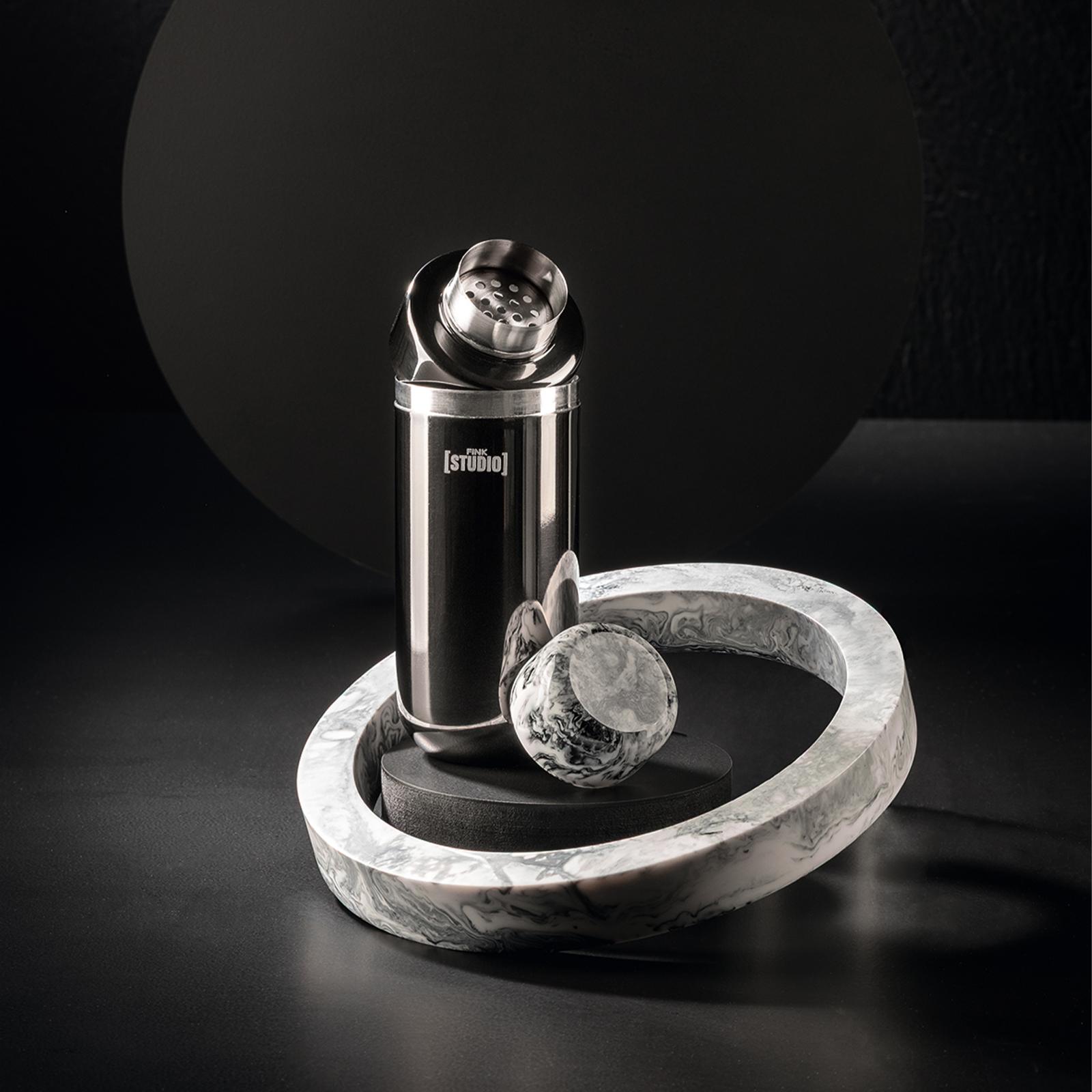 • Länge ca.: 8,1 cm • Breite ca.: 8,1 cm • Höhe ca.: 21,8 cm • Serie: Fink Studio • Material: Edelstahl • Material 1: Resin • Veredelung: vernickelt • Oberfläche: glänzend • spülmaschinengeeignet: nein • Farbe: schwarz-weiß • Ausstattung 1: in Fink STUDIO Geschenkverpackung • Form: rund • Dimension: groß • Umgebungsnutzung: Für Innenbereich • Anlass: Feiern & Partys, Dinnerpartys, Picknick & Grillabende • Nutzungsbereich: Gastronomie, Restaurants & Bars, Privater Gebrauch • Nutzungsmöglichkeit: kreative & klassische Cocktails & Mocktails mixen