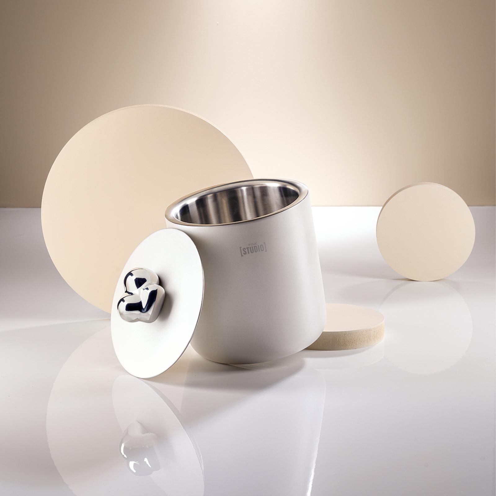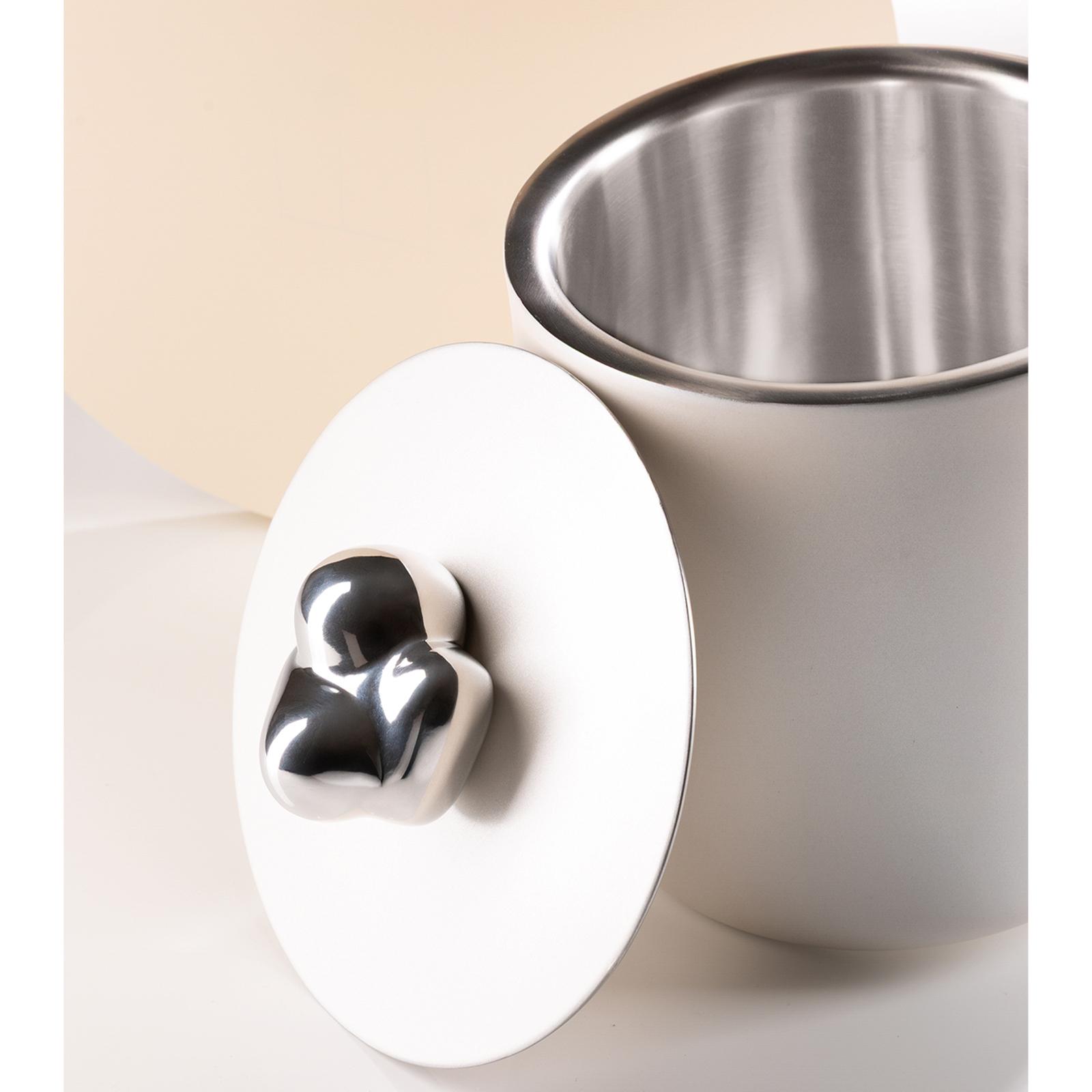 ✓ Eiswürfeleimer in zylindrischer Form mit klarer Linienführung und in silber-cremefarbener Ausführung ✓ Eiseimer gefertigt aus Edelstahl und Aluminium mit pulverbeschichteter Oberfläche und matter Optik ✓ Mit einer Maße von ca. 24 cm Höhe kompakt proportioniert für Hausbar, Sideboard & gedeckten Tisch ✓ Der Deckel mit Griff ermöglicht ein einfaches Öffnen sowie sicheres Abdecken des Eiswürfelbehälters ✓ Barzubehör geeignet für Eiswürfel bei Tisch & kombinierbar mit Glas, Metall oder Keramik Accessoires