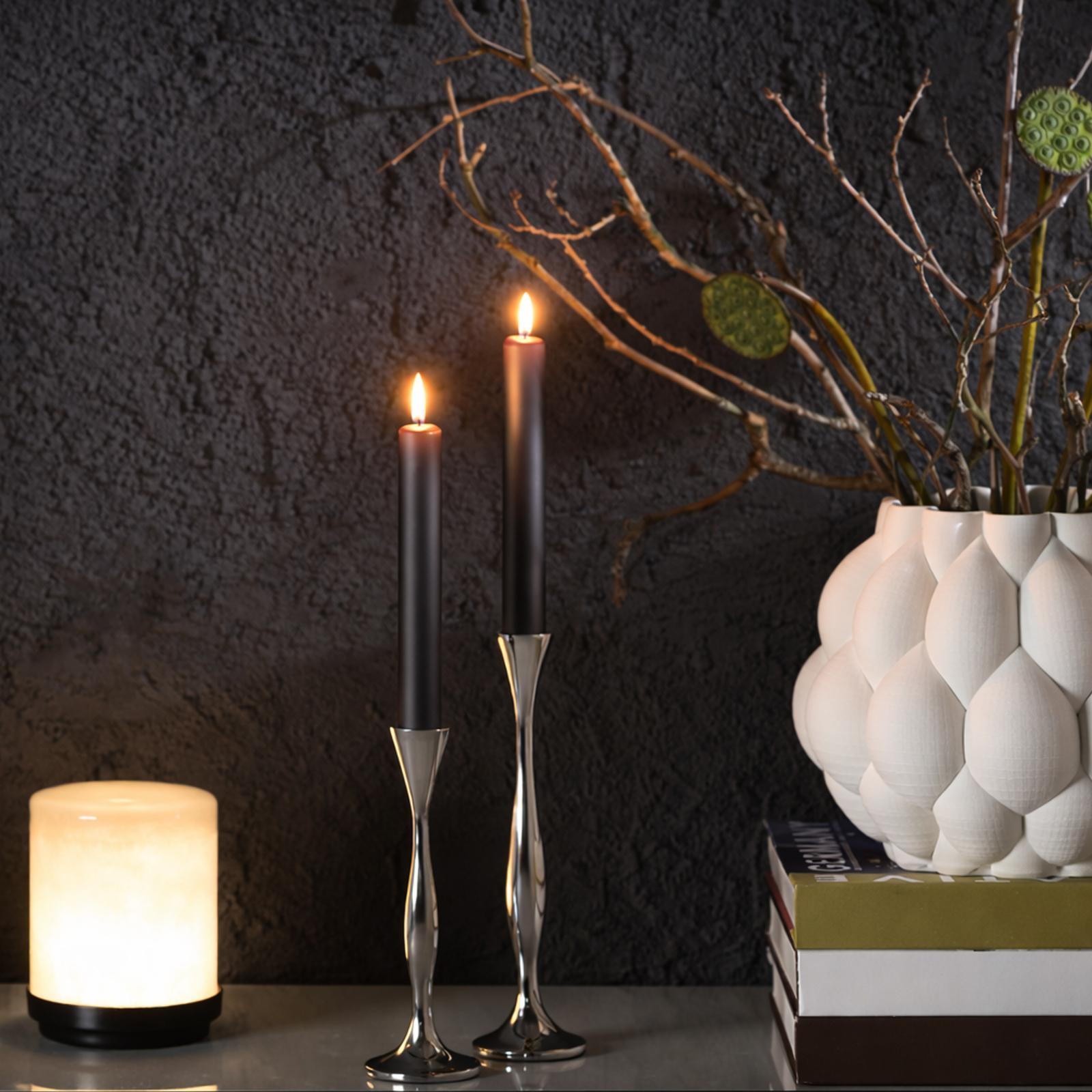 ✓ Kerzenständer in schlanker, geschwungener Form, mit silbern glänzender Oberfläche für edle Akzente ✓ Stabkerzenhalter aus Aluminium mit glatter, polierter Oberfläche und in stabiler Ausführung gefertigt ✓ Silberner Kerzenhalter für den Alltag, Dinner oder festliche Tafeln mit stimmungsvollem Kerzenschein ✓ Mit einer Höhe von ca. 25 cm ideal für Stabkerzen und dekorative Lichtakzente auf Tisch und Sideboard ✓ Wohnaccessoire kombinierbar mit modernen, klassischen & auch minimalistischen Einrichtungsstilen